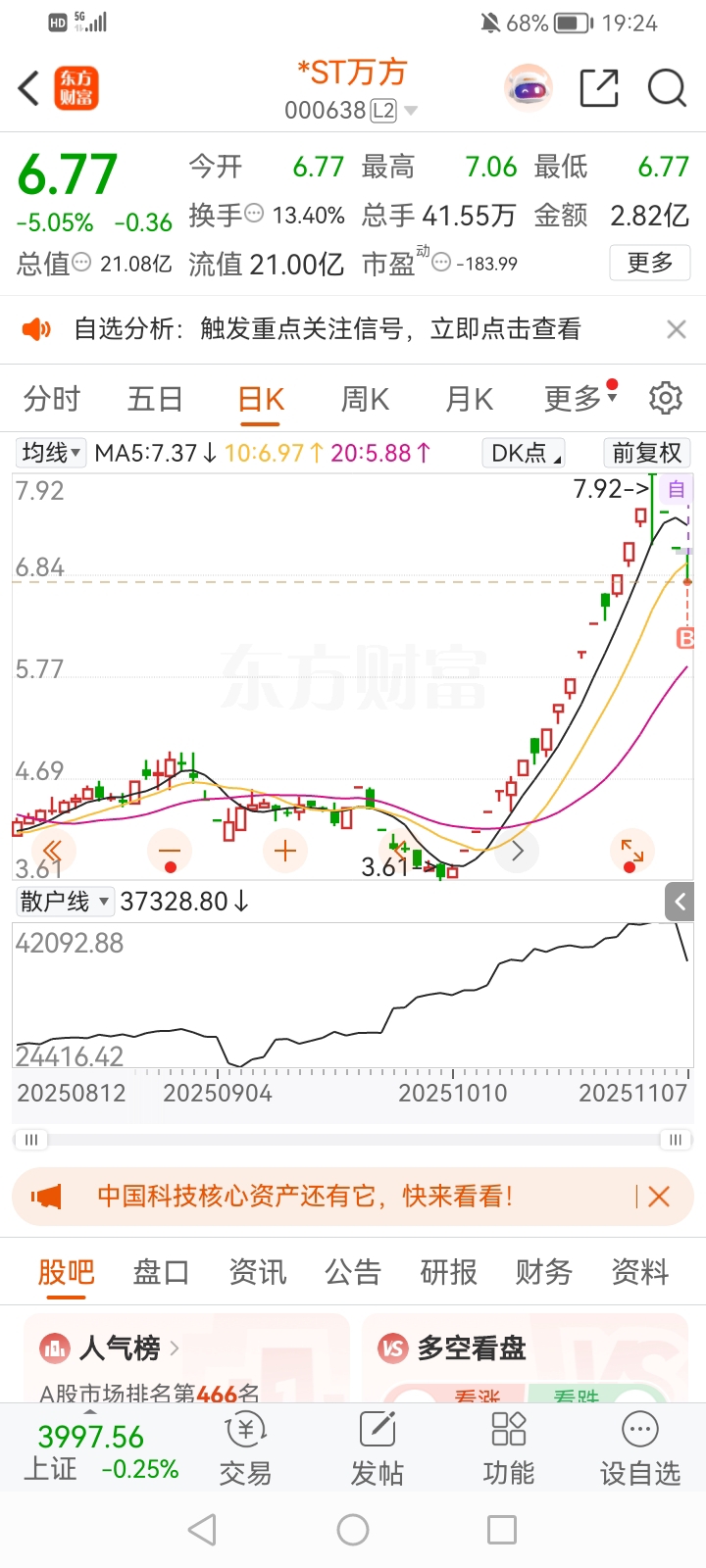 3.6涨上来的,翻倍了!周一止损!怕A!