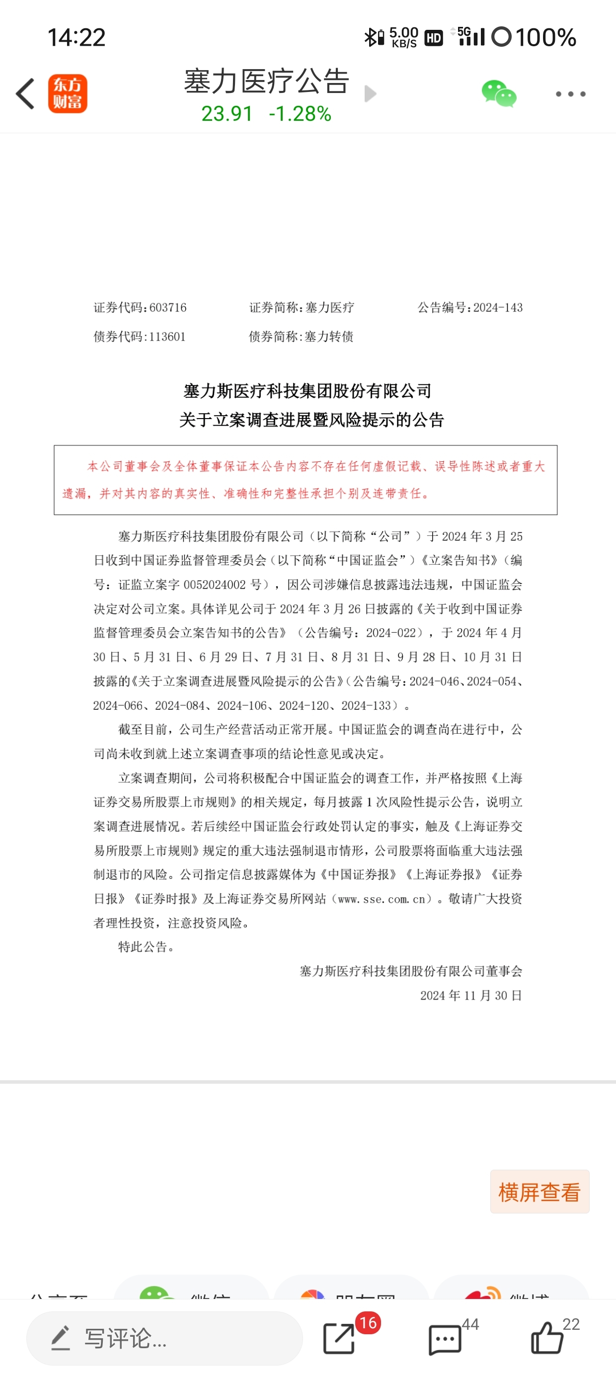 那些说调查进展有重大违法肯定会退市的,自己去看看塞力医疗和st围海,塞力的处罚结果前几个月都出来了,就是信披违规而已,加上重大违法只是为了保险点而已,正常的格式模板就被人吹会退市,也是醉了