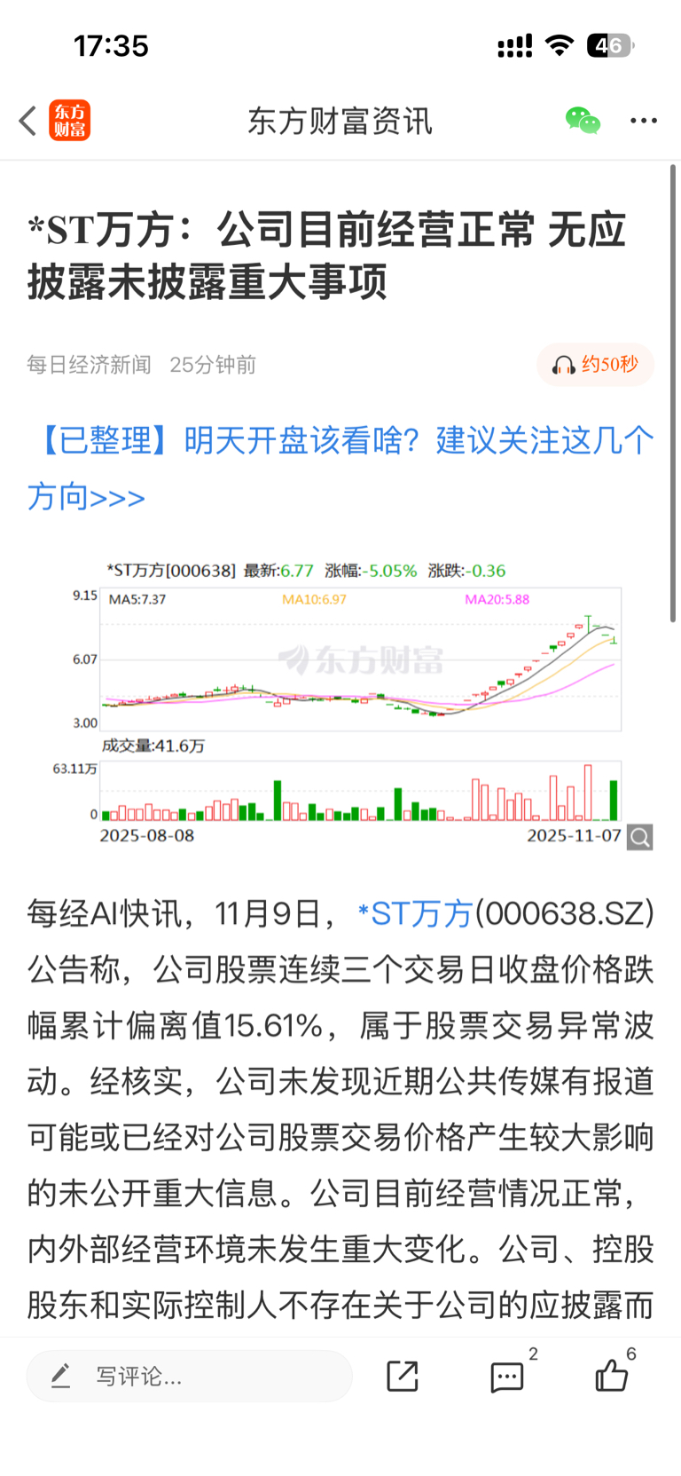 $*ST万方(SZ000638)$ 特意发这个公告干嘛