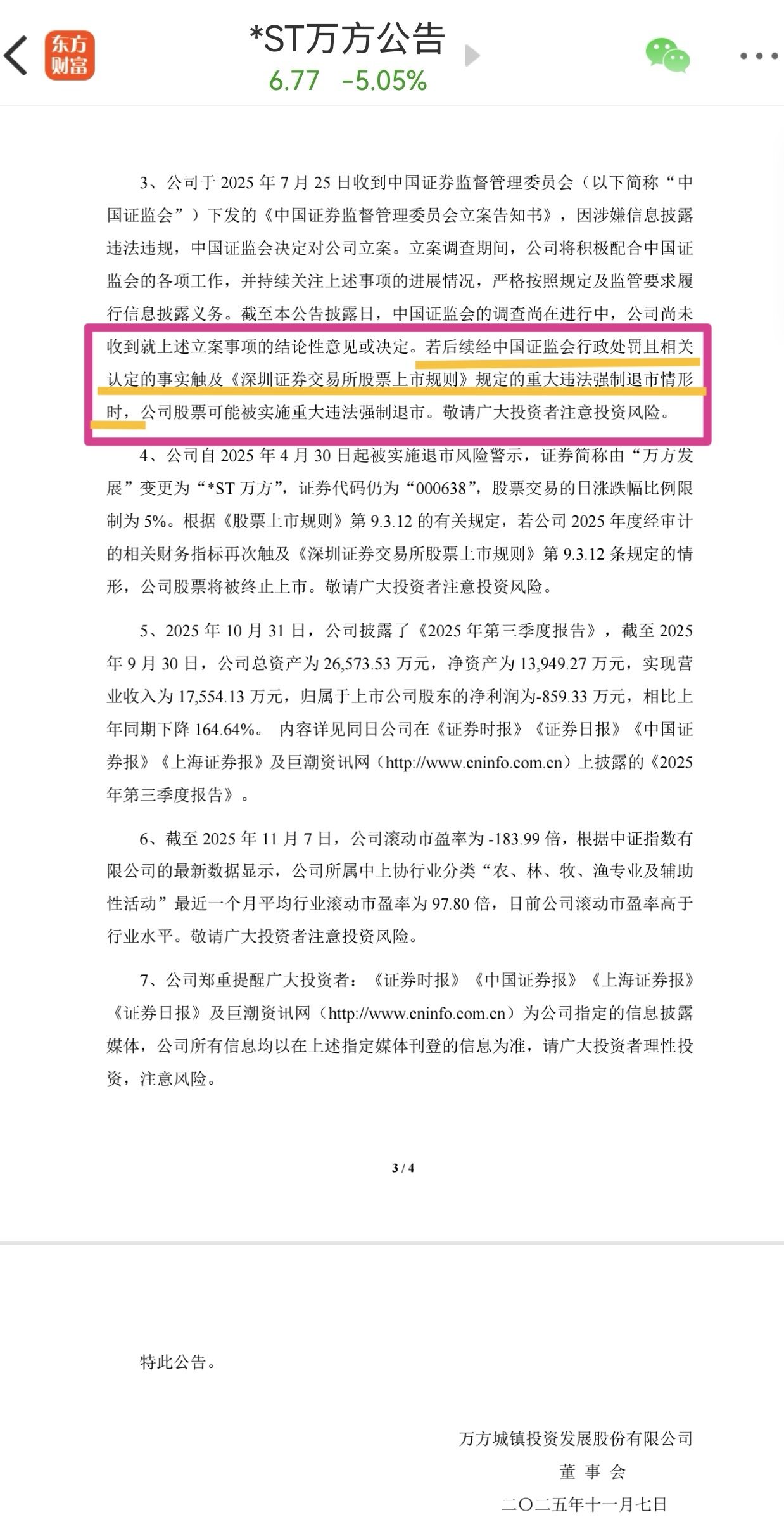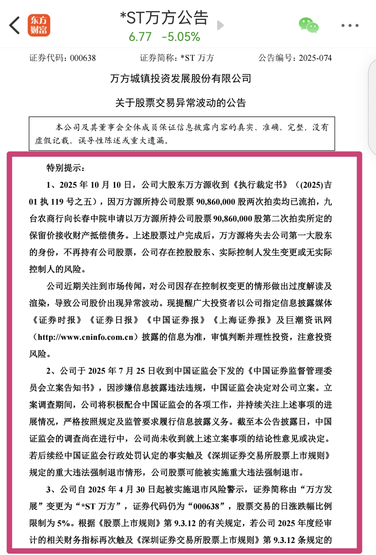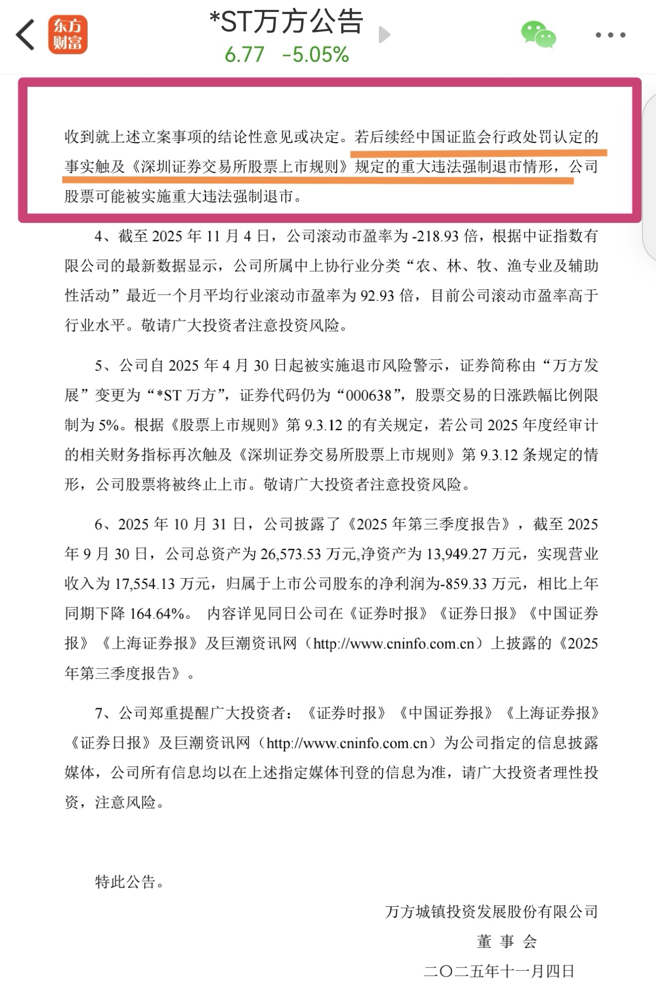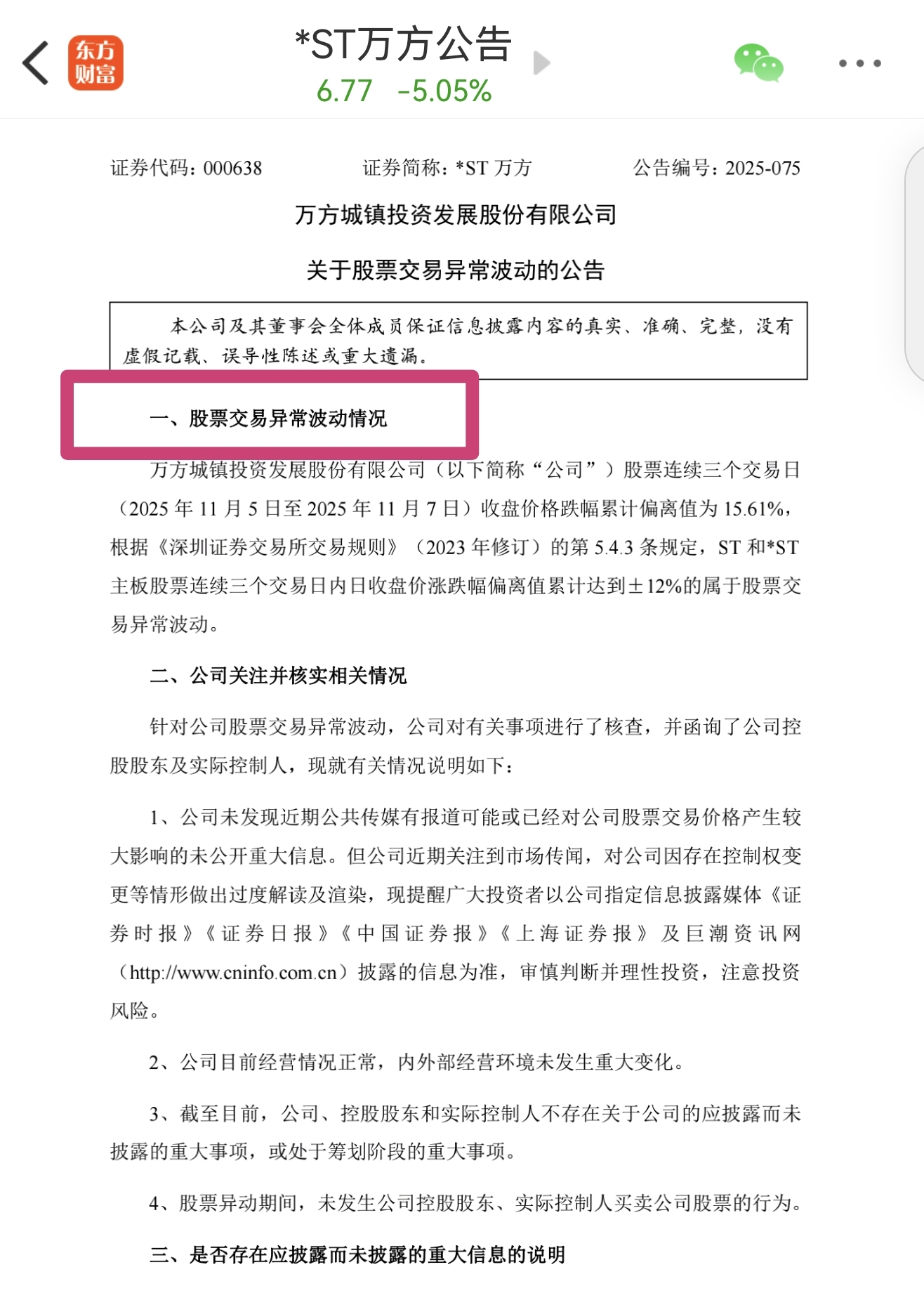 仔细看一下万方的异动公告,模板是变化了的!对比下11.4日以前和11.7日的公告,就会发现: