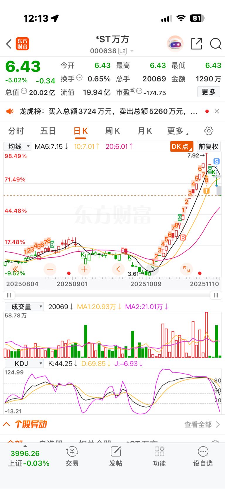 $*ST万方(SZ000638)$ 还好上星期五出来了