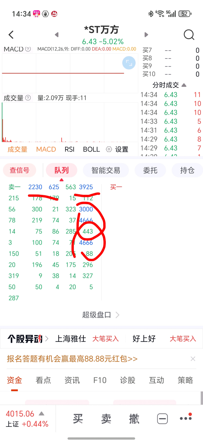 $*ST万方(SZ000638)$ $*ST万方(SZ000638)$ 大单堵门,根本出不去,他自己也出不去,S~B太多,相间何太急.都散了吧