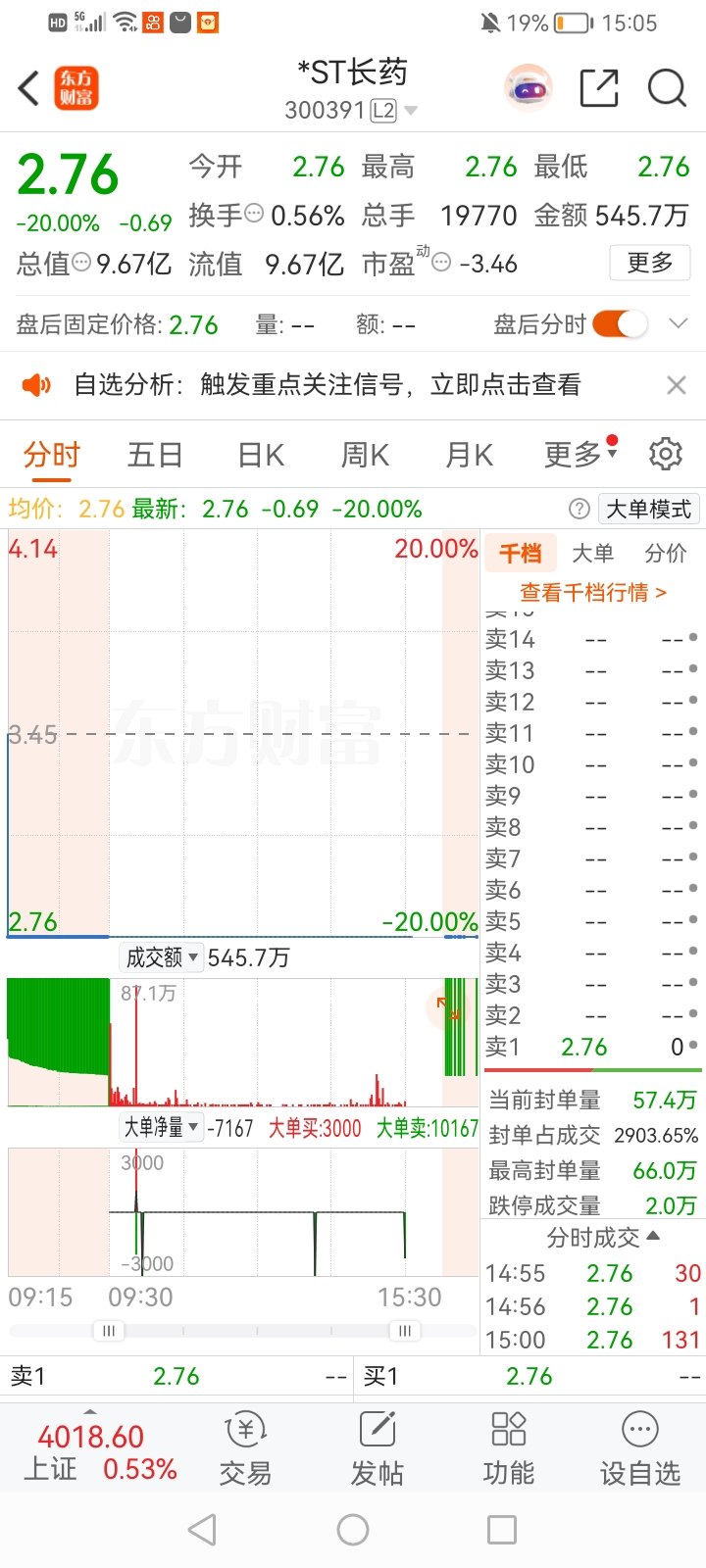 $*ST万方(SZ000638)$ $*ST长药(SZ300391)$ 长药是啥意思?卖单全撤单了吗?卖单显示0???