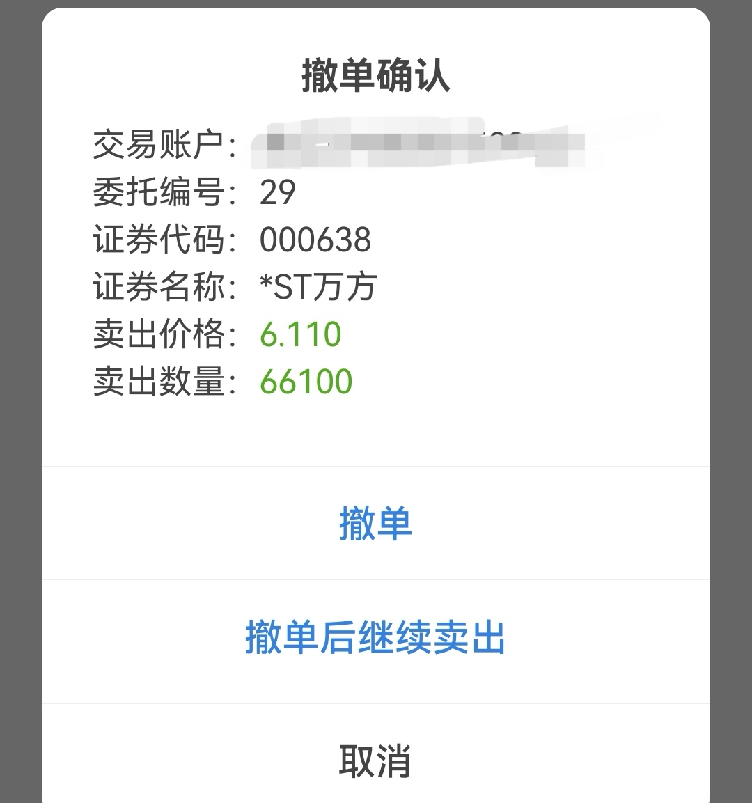 $*ST万方(SZ000638)$ 大家一起砸盘吧,一个都别想好,gou庄和公司都不是人,东财29号不知道明天能不能跑掉,本来上周五和今天都能跑,但是撤单了