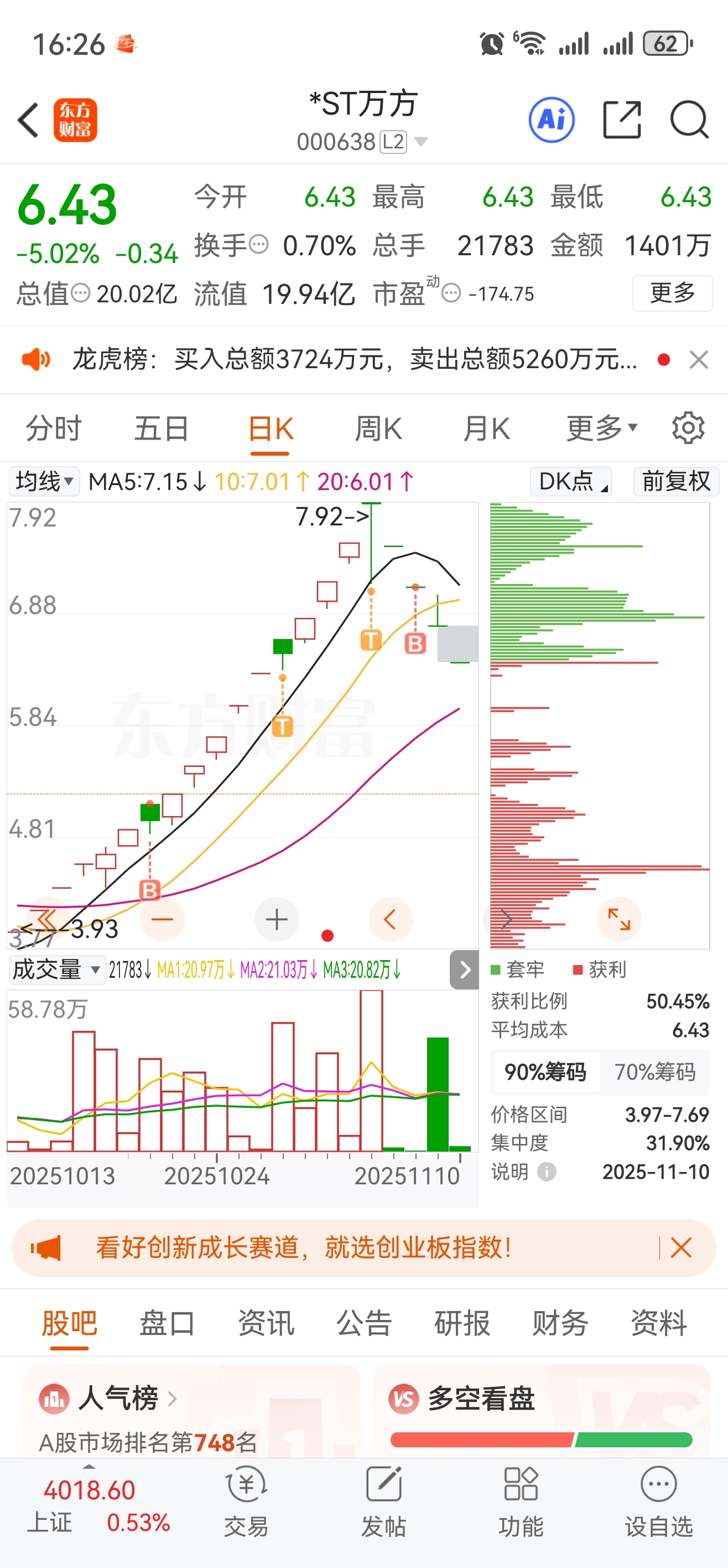 $*ST万方(SZ000638)$ 还能抗几个跌停,你们抓紧挂单跑,我断后!