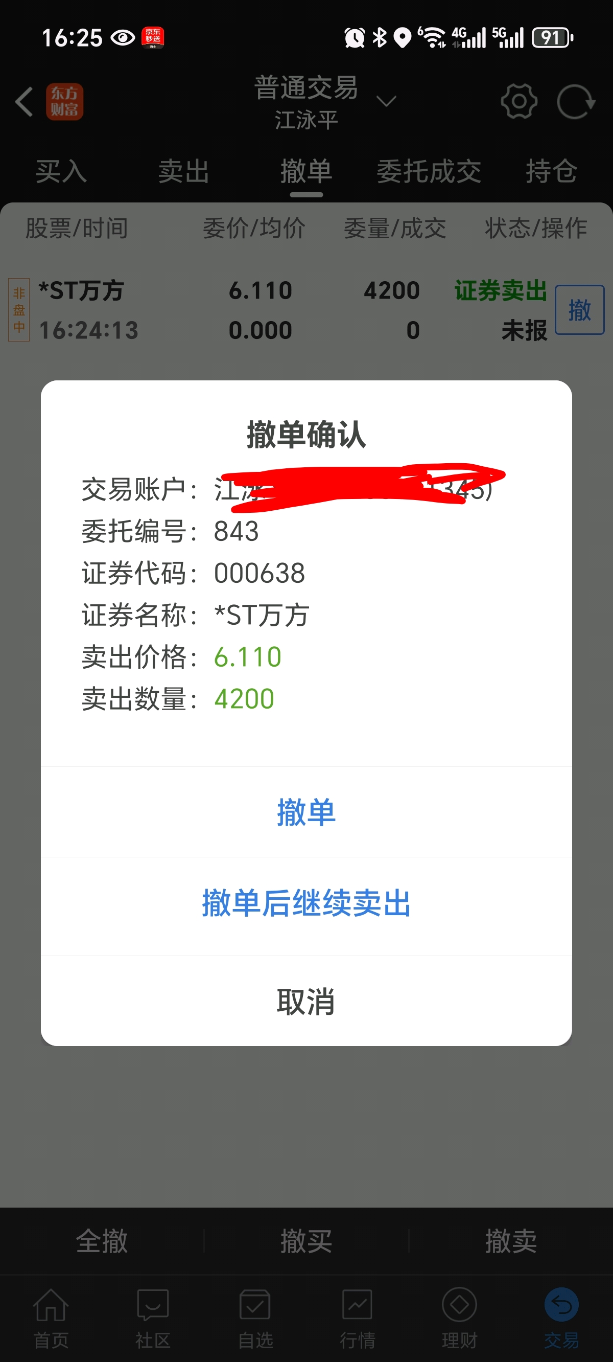 $*ST万方(SZ000638)$ 挂单跑了,受不了,亏了十个多点