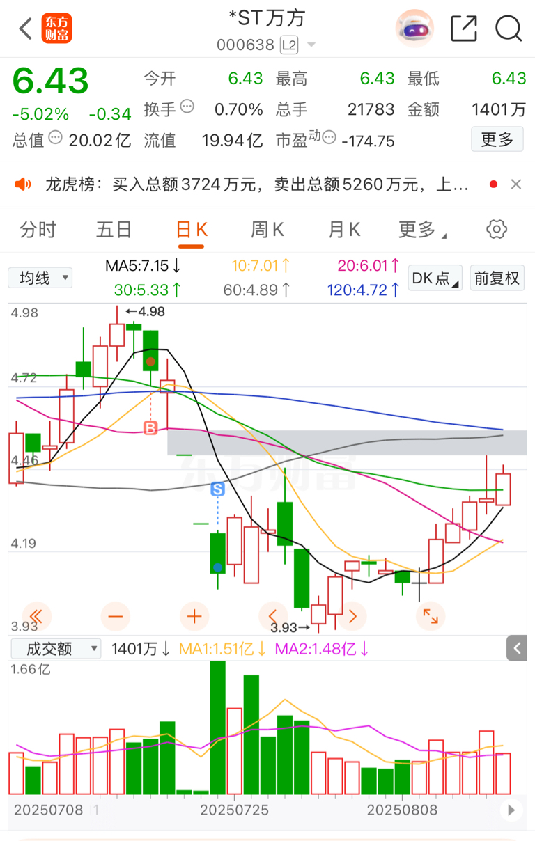 $*ST万方(SZ000638)$ 第一次流拍也是好几个跌停,排了两天才给放出去,一字跌停第四天有了止跌趋势,这次一字跌停跟第一次流拍完全不是一码事,根本没有止跌迹象,有点像要被抬走的走势