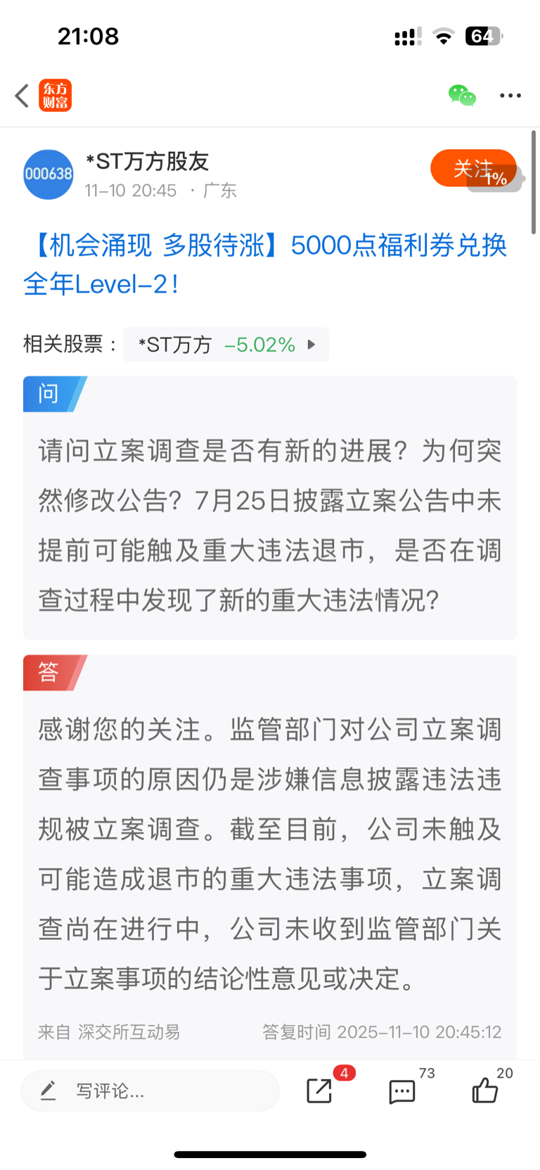 $*ST万方(SZ000638)$ 荀托恶意带节奏,老庄配合压单,造成了这波踩踏。好好的一个换手龙,就因为加的一句话,变成了虫。一轮下来,受伤的只有被带节奏的低价割肉的小散们,而勾庄却吃得满嘴流油,吃了筹码还又吃差价,可悲,可叹!