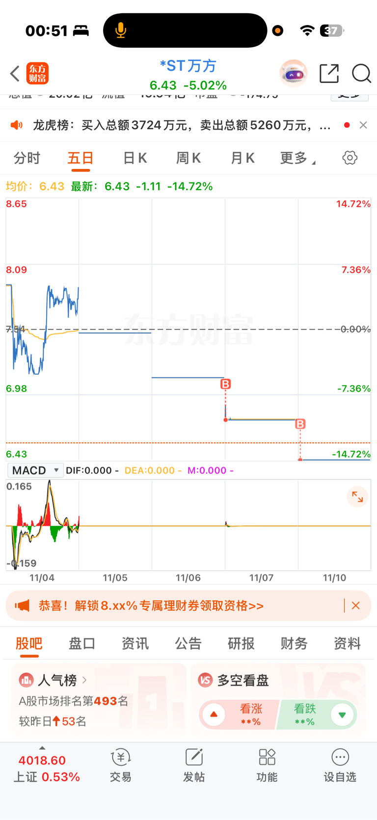 $*ST万方(SZ000638)$ 如果明天还跌停,继续格局!