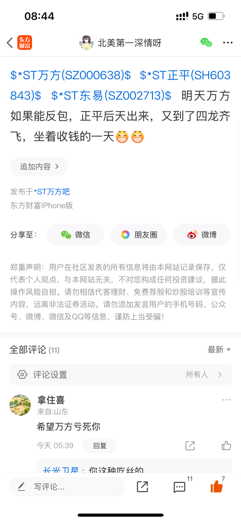 $*ST万方(SZ000638)$ 一个跌停这个拿住喜家里一个人被销户