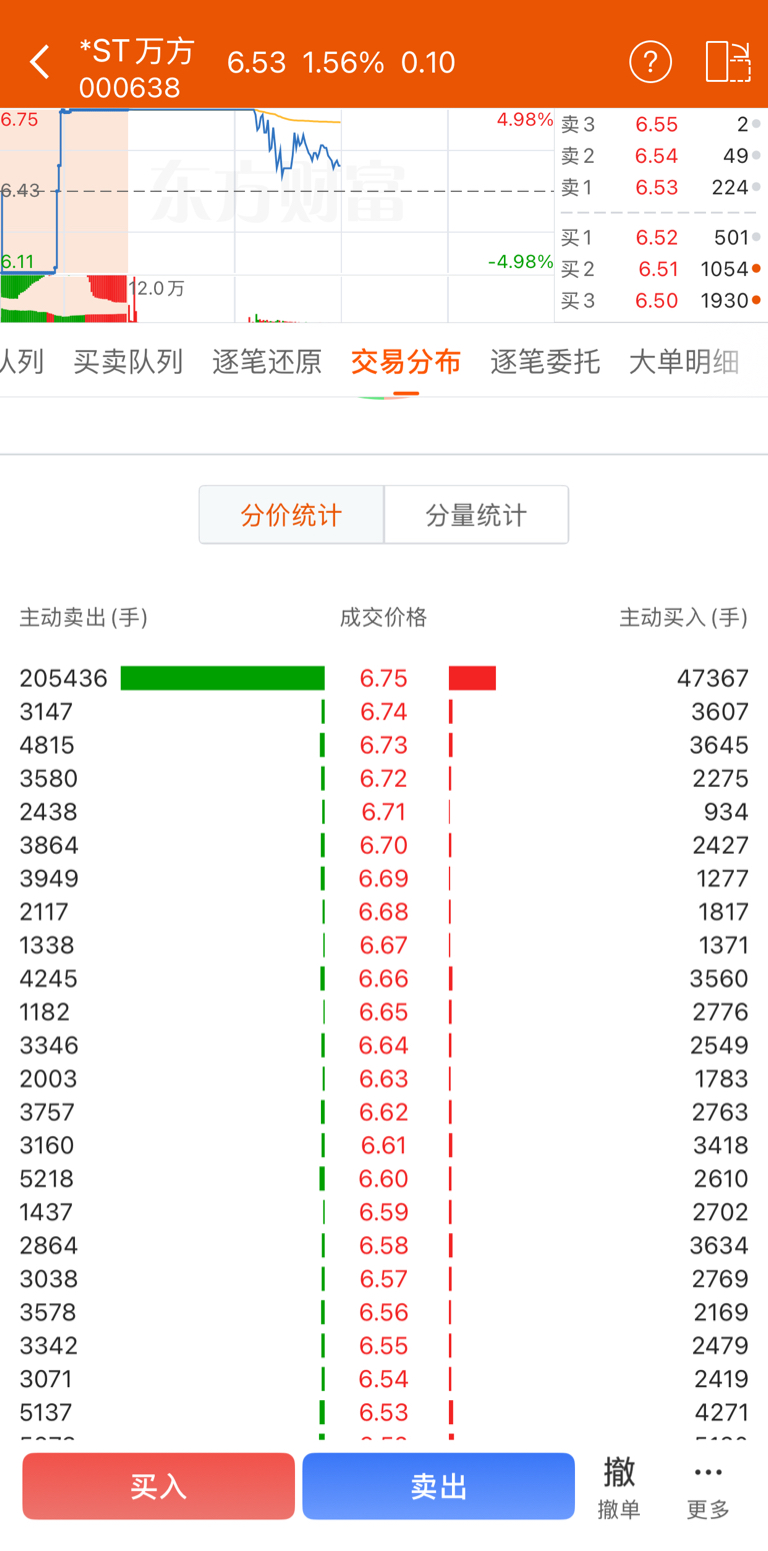 $*ST万方(SZ000638)$ 看买卖占比就知道下午地板了,买盘枯竭,主力出了十多万手的货,别指望明天有人来救你们,反正我是跑了