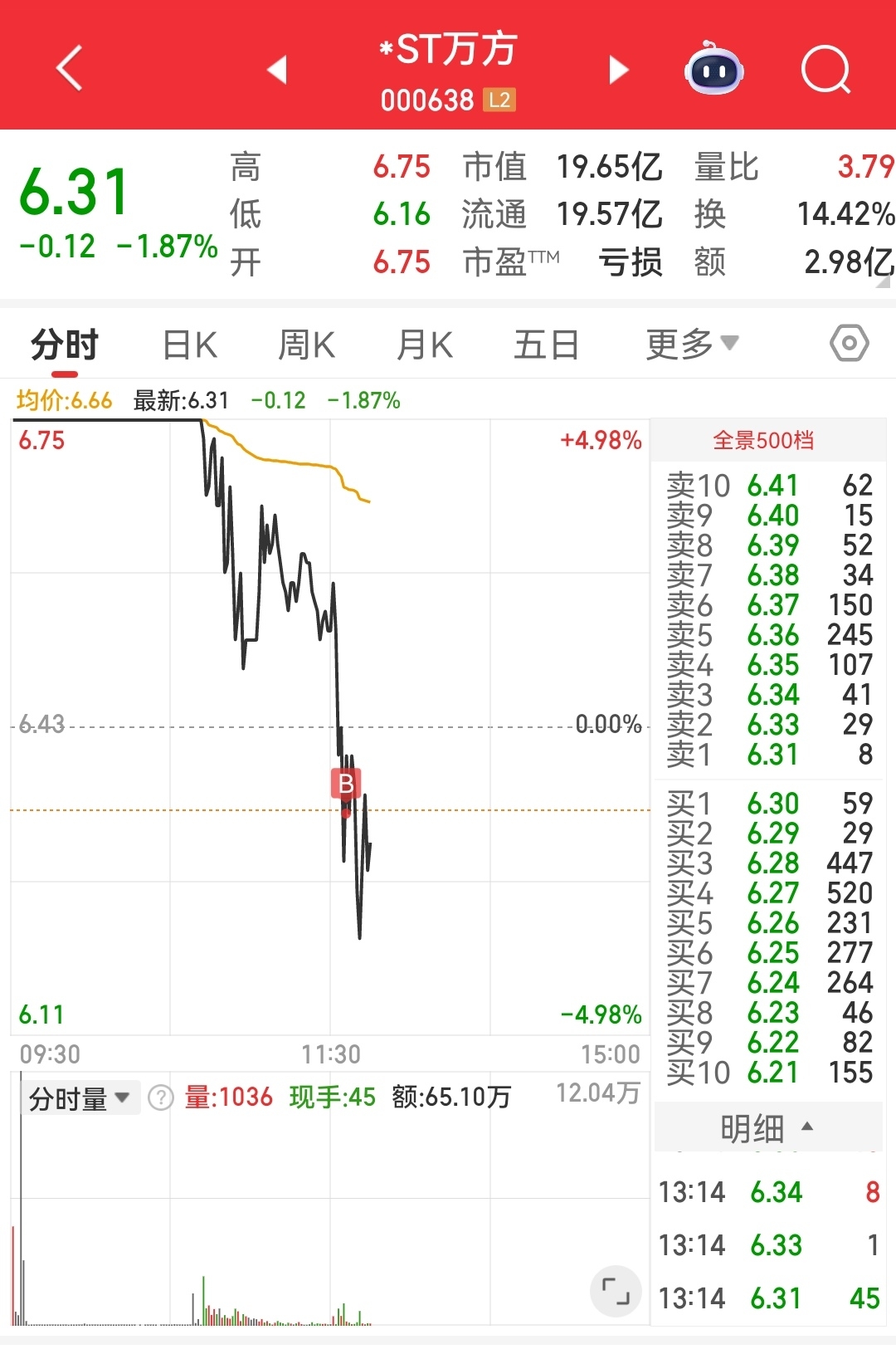$*ST万方(SZ000638)$ 买早了一点点,去nmd,再跌就继续加仓