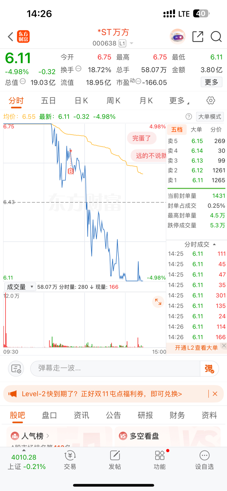 $*ST万方(SZ000638)$ 我这是造什么孽了,纯纯的韭菜,八个点,一万多没了,我真服了……