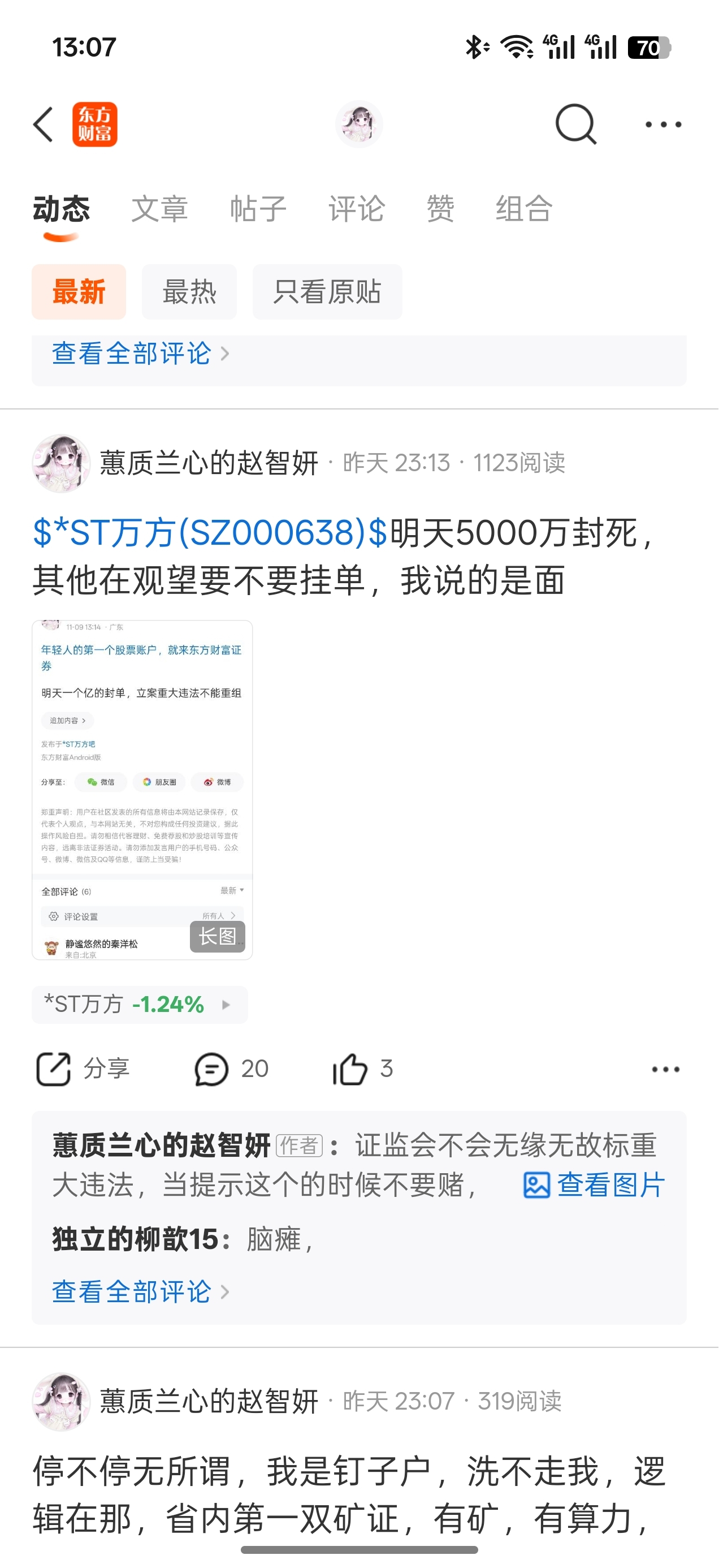 温馨提示: 1.根据《证券法》规定,禁止编造、传播虚假信息或者误导性信息,扰乱证券市场;2.用户在本社区发表的所有资料、言论等仅代表个人观点,与本网站立场无关,不对您构成任何投资建议。用户应基于自己的独立判断,自行决定证券投资并承担相应风险。《东方财富社区管理规定》