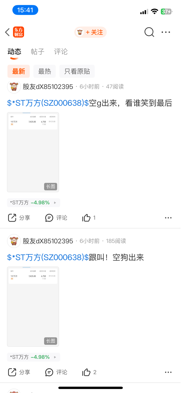 $*ST万方(SZ000638)$ 这股好玩,要是像以前那样在交易所大厅买卖,估计都得在现场打起来了。^_^