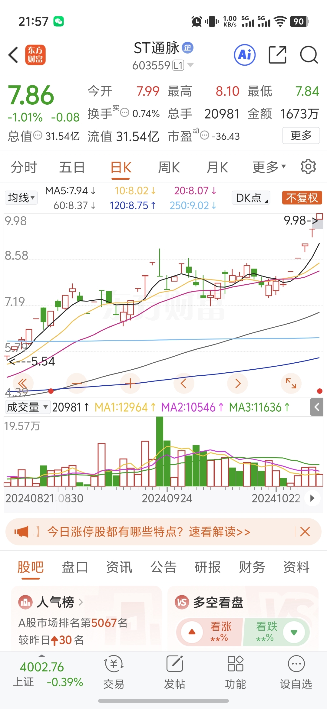 还记得通脉吗?也是吉林的票,去年在7块多天地,地天疯狂洗,等消息,消息一出来板到
