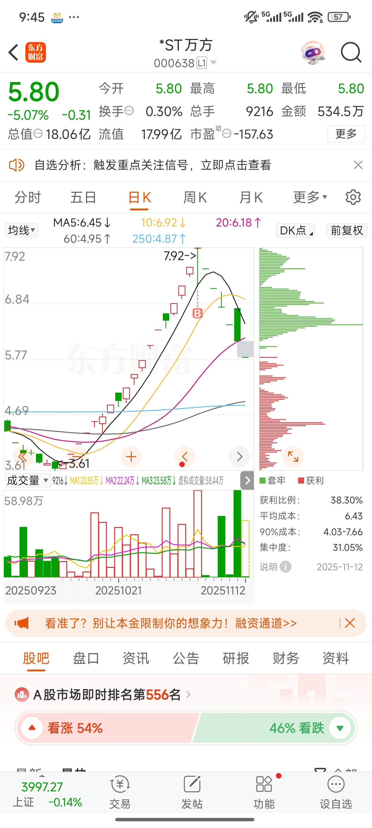 $*ST万方(SZ000638)$ 最倒霉的一笔交易#炒股日记#