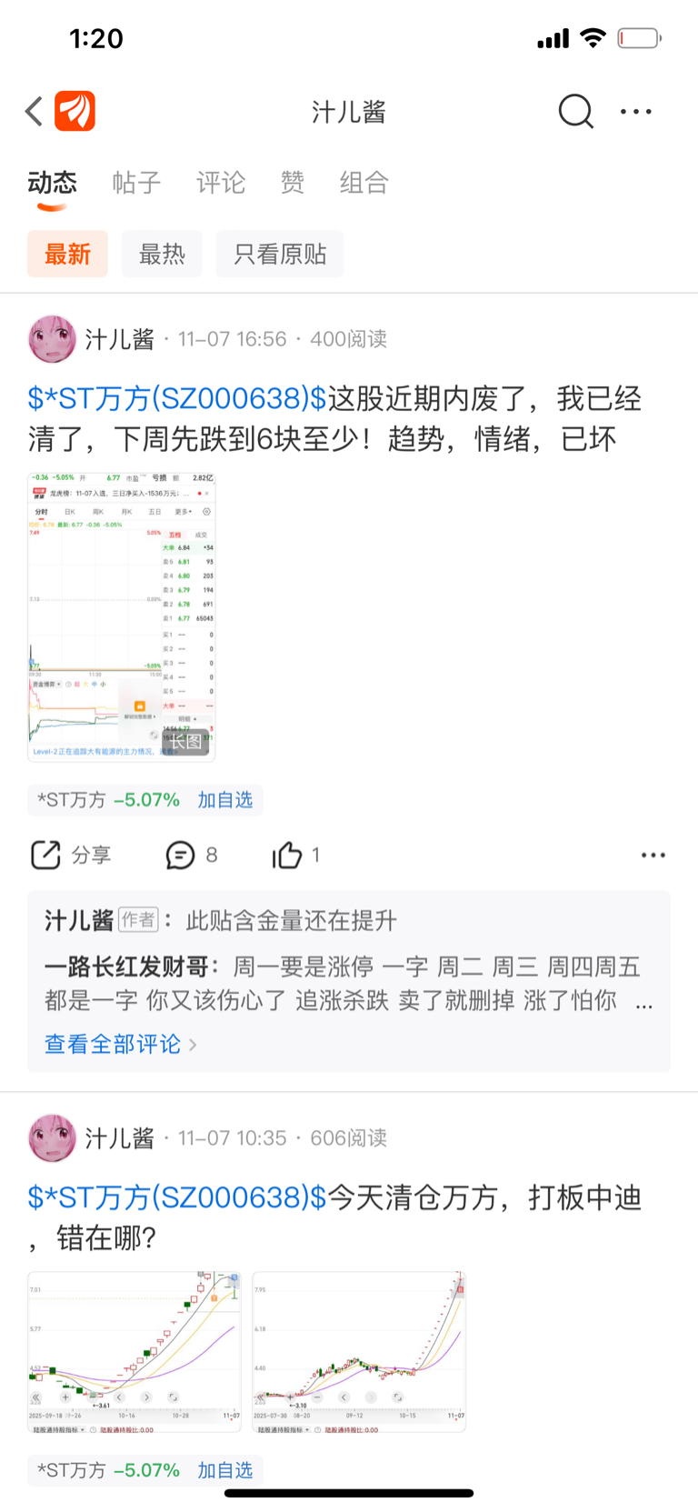 $*ST万方(SZ000638)$ 上周说的应验了,听我劝的,起码少亏