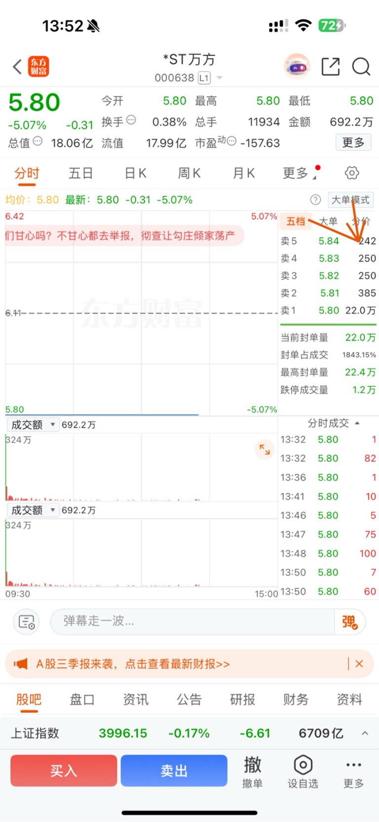 $*ST万方(SZ000638)$ 太疯狂了,演都不演了哈哈哈,200%退市,主力疯狂砸,散户疯狂接
