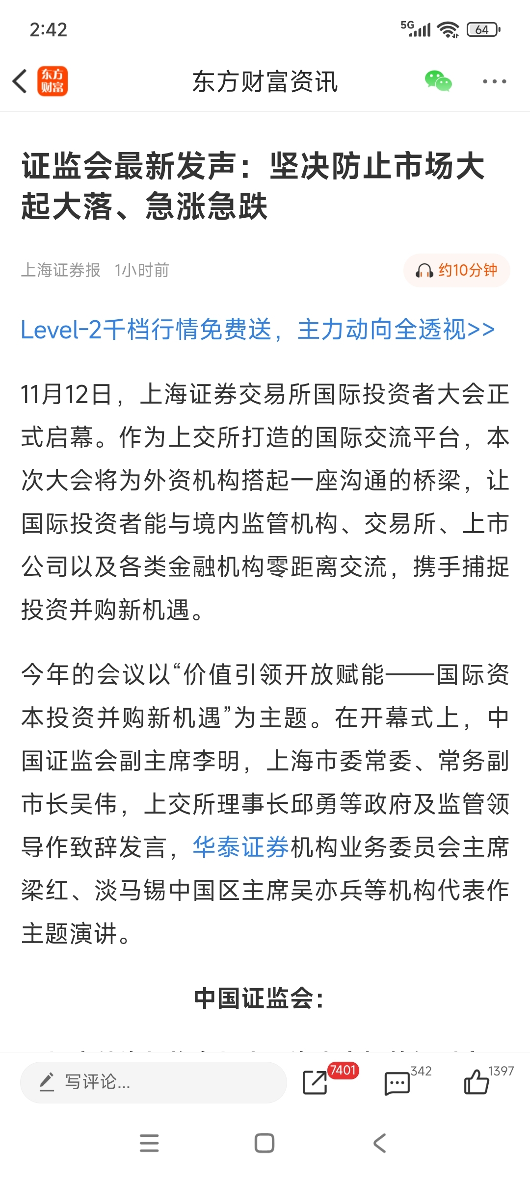 $*ST万方(SZ000638)$ 证监会:坚决防止市场大起大落、急涨急跌