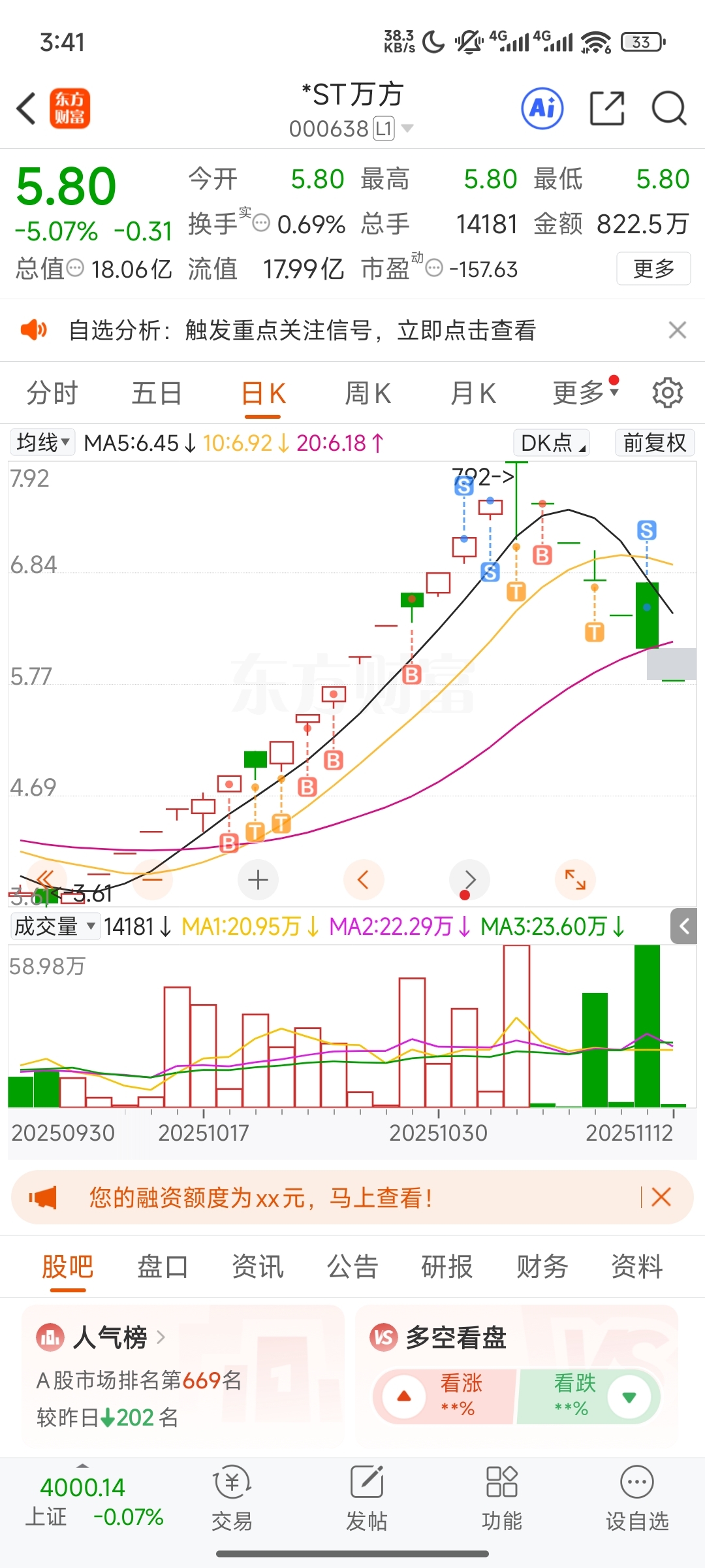 $*ST万方(SZ000638)$ 最后一点底仓昨天全清掉了,不知道那个好兄弟接了我的盘