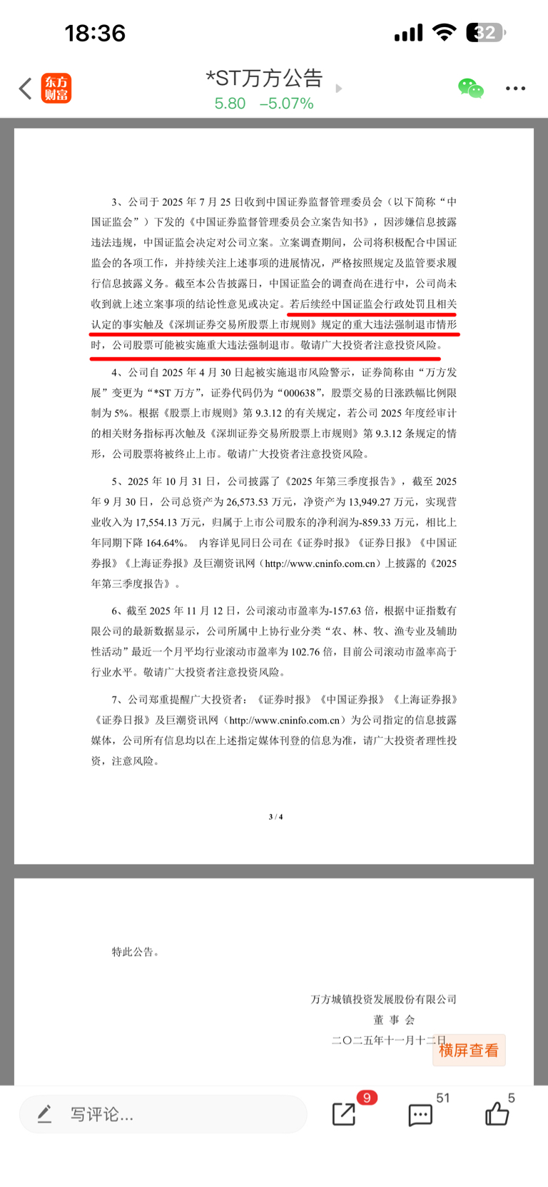 $*ST万方(SZ000638)$ 说是董秘自己写的看看