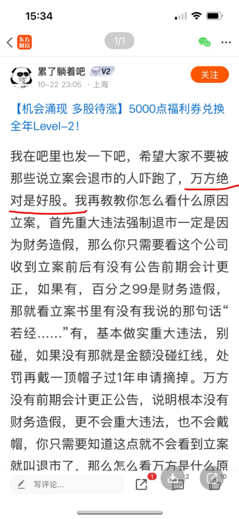 $*ST万方(SZ000638)$ 来啊 掰扯啊 拉黑我干嘛 还说我马后炮 自己翻翻我帖子 我上周就开始唱空了 你说你唱空了 你的帖子呢