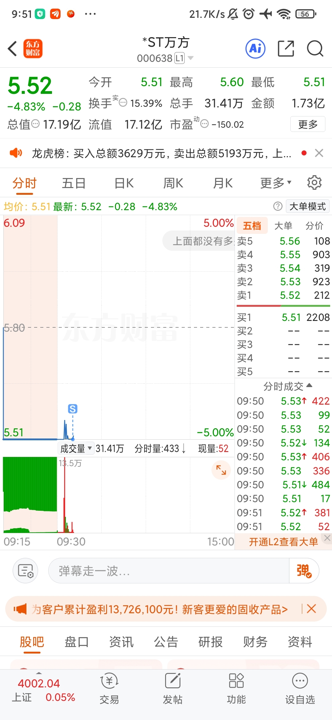 $*ST万方(SZ000638)$ 我也走了,跌了十个点