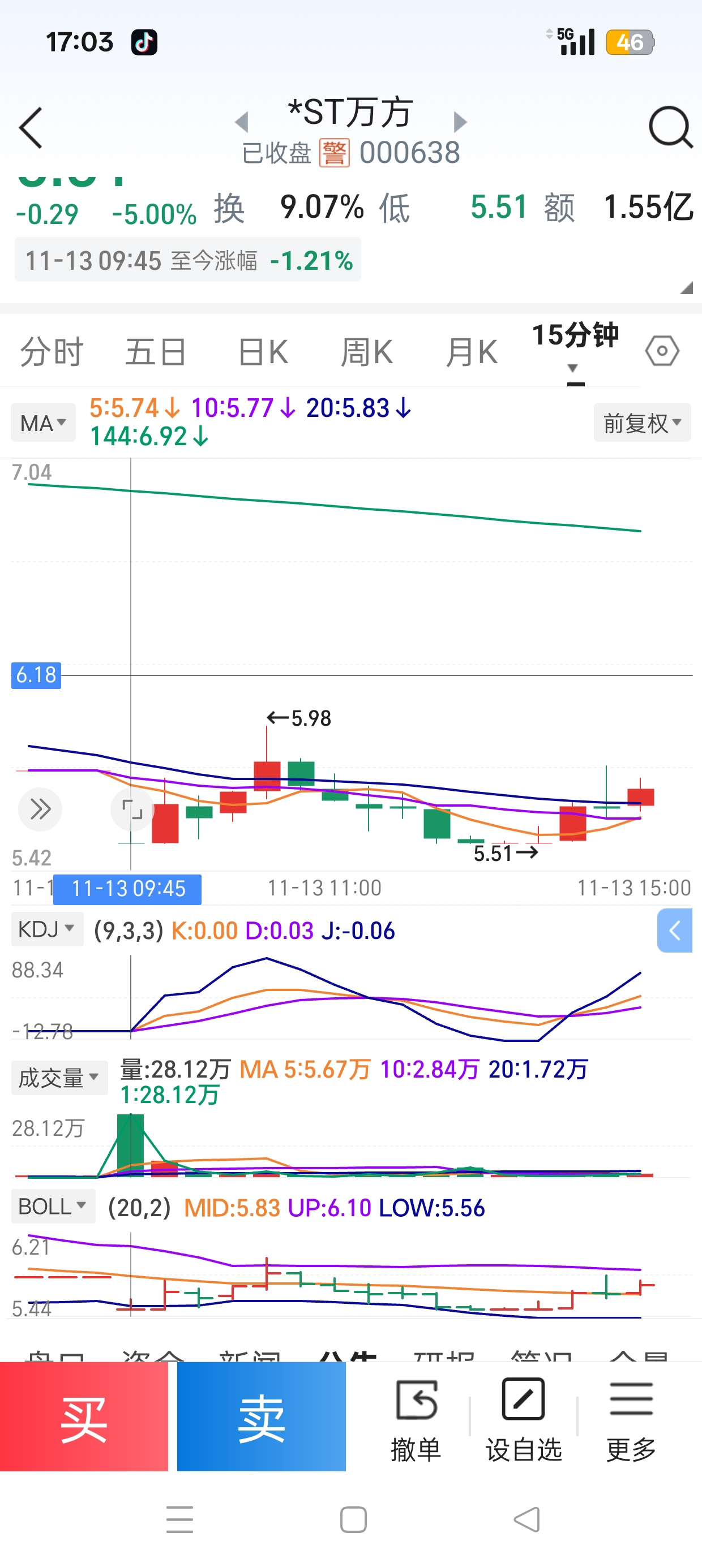 今天开盘后十五分钟换手几乎占全天换手的一半。从十五分钟K线看,大概率明天会冲高。