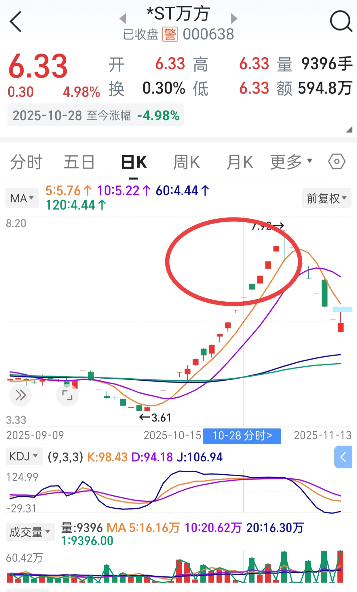 从日K线看,第七板换手最高,且下跌期间的换手基本与上升期间6.33元至顶部的换手差不多了,洗的可以了。大概率今天是第二波的开始。