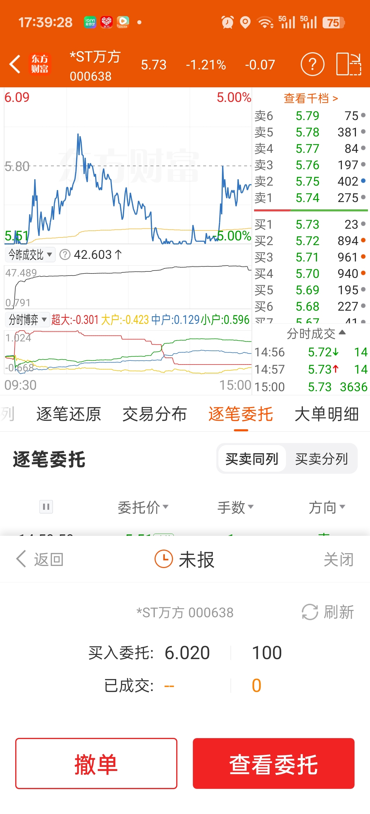 $*ST万方(SZ000638)$ 逗你玩,明天竞价就撤单