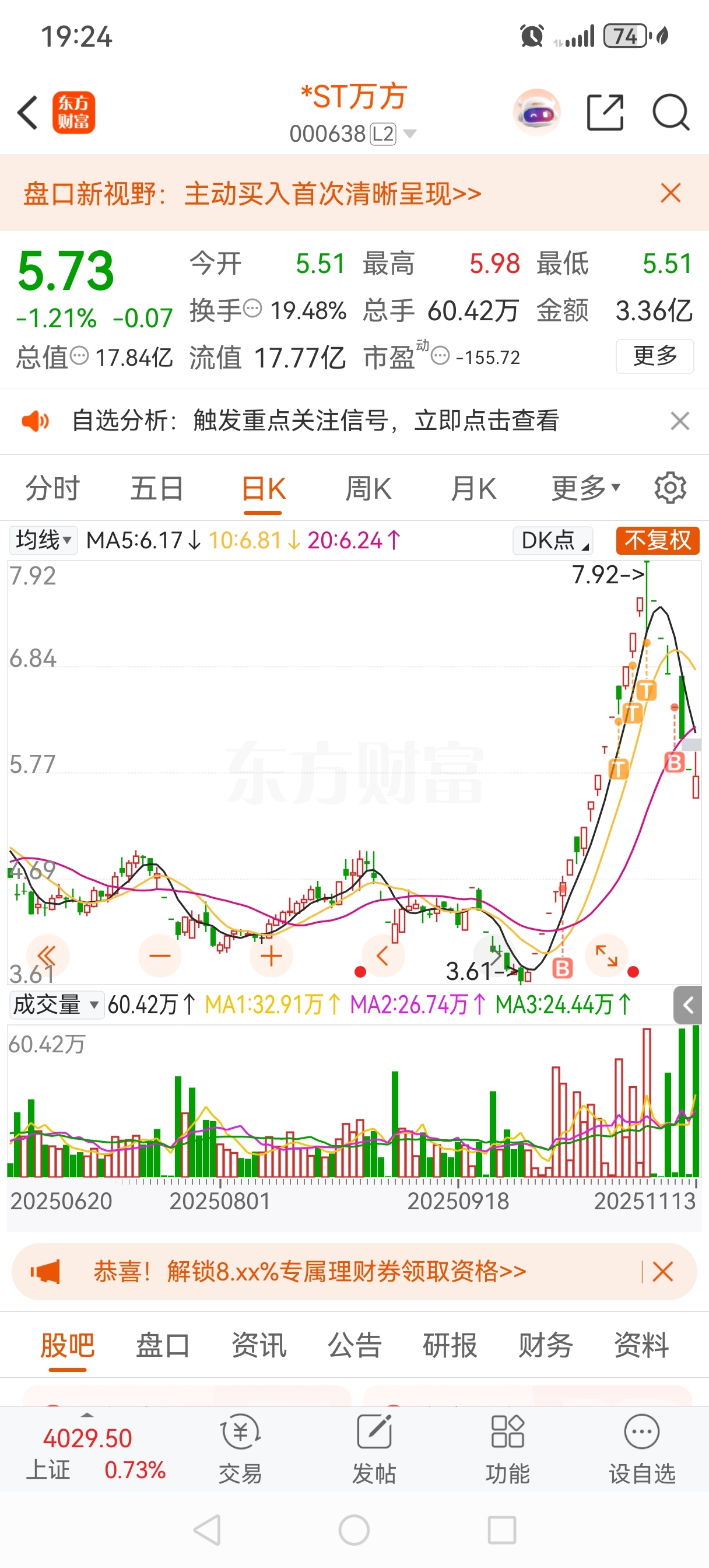 $*ST万方(SZ000638)$ 我没走,也不卖,有没有我认识的朋友,还在坚守的,我好孤单