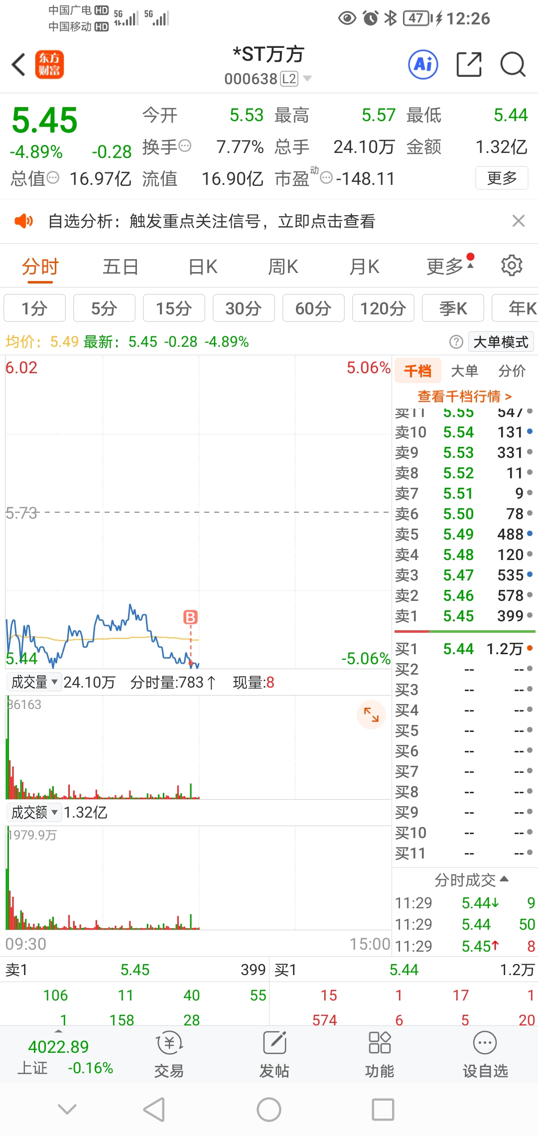 $*ST万方(SZ000638)$ 今天进场布局万方,先买两层仓位两万股
