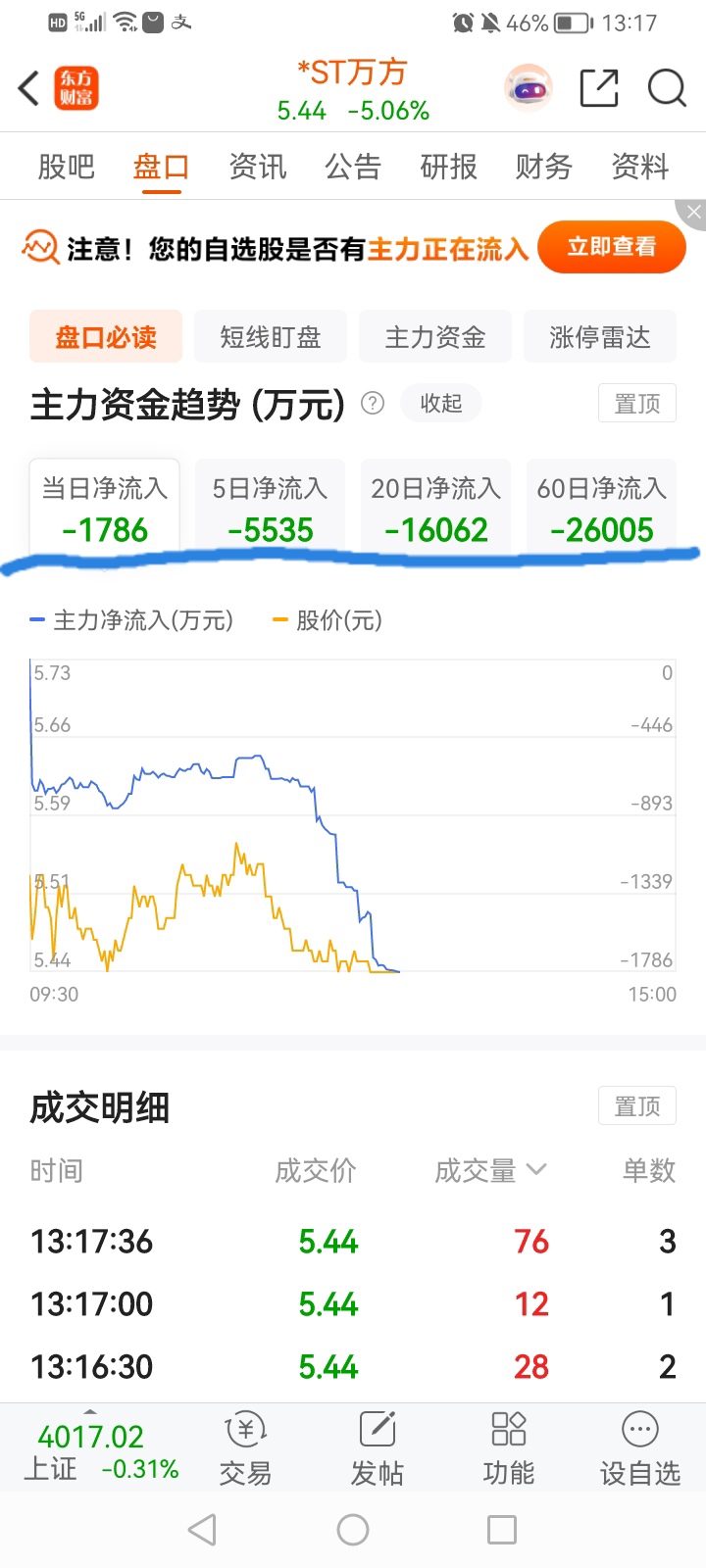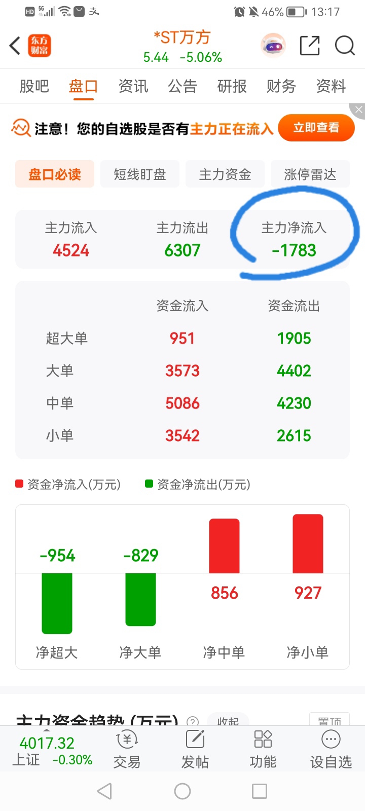 万方周末肯定有大雷要暴,大资金持续出逃,今天主力净流入负1783万,5日、20日