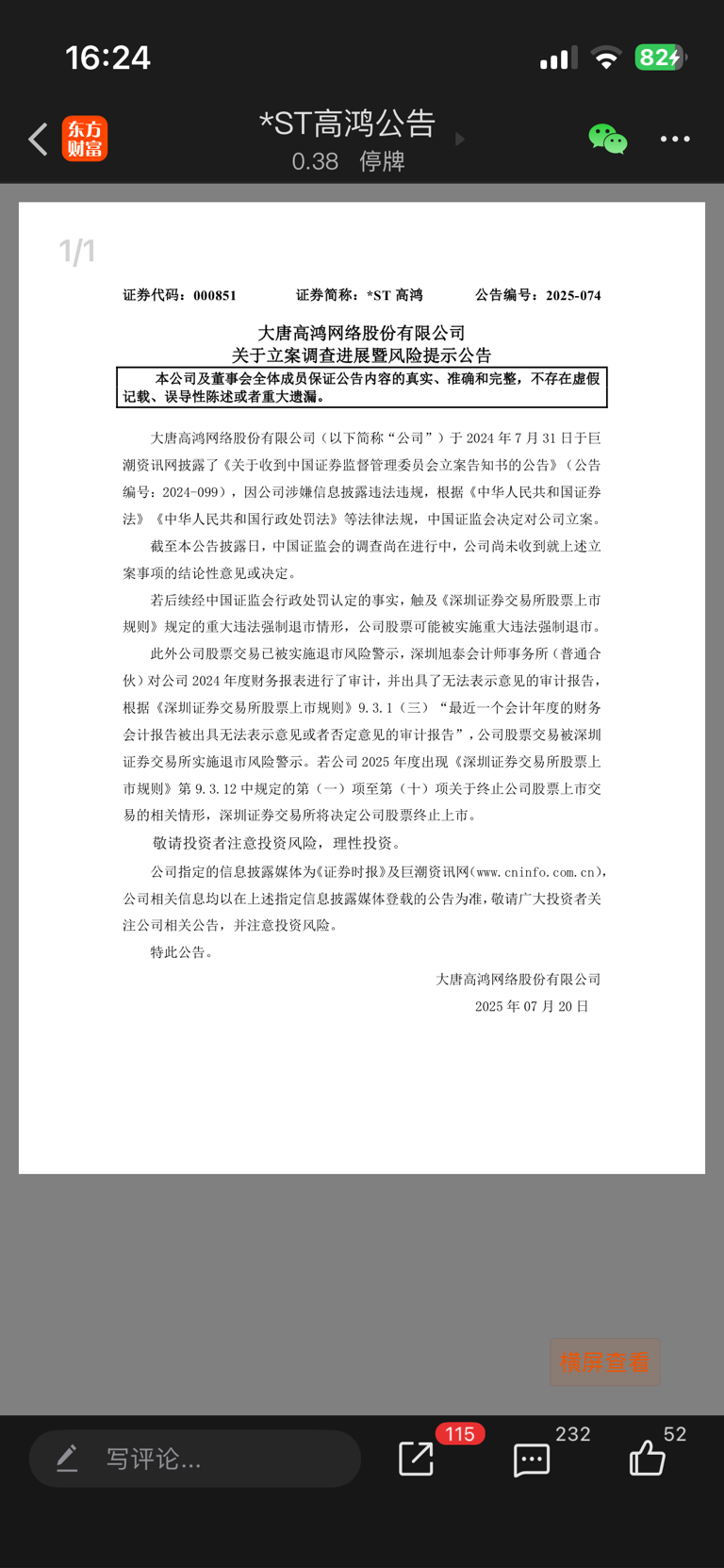 $*ST万方(SZ000638)$ 退市已成腚菊。。。