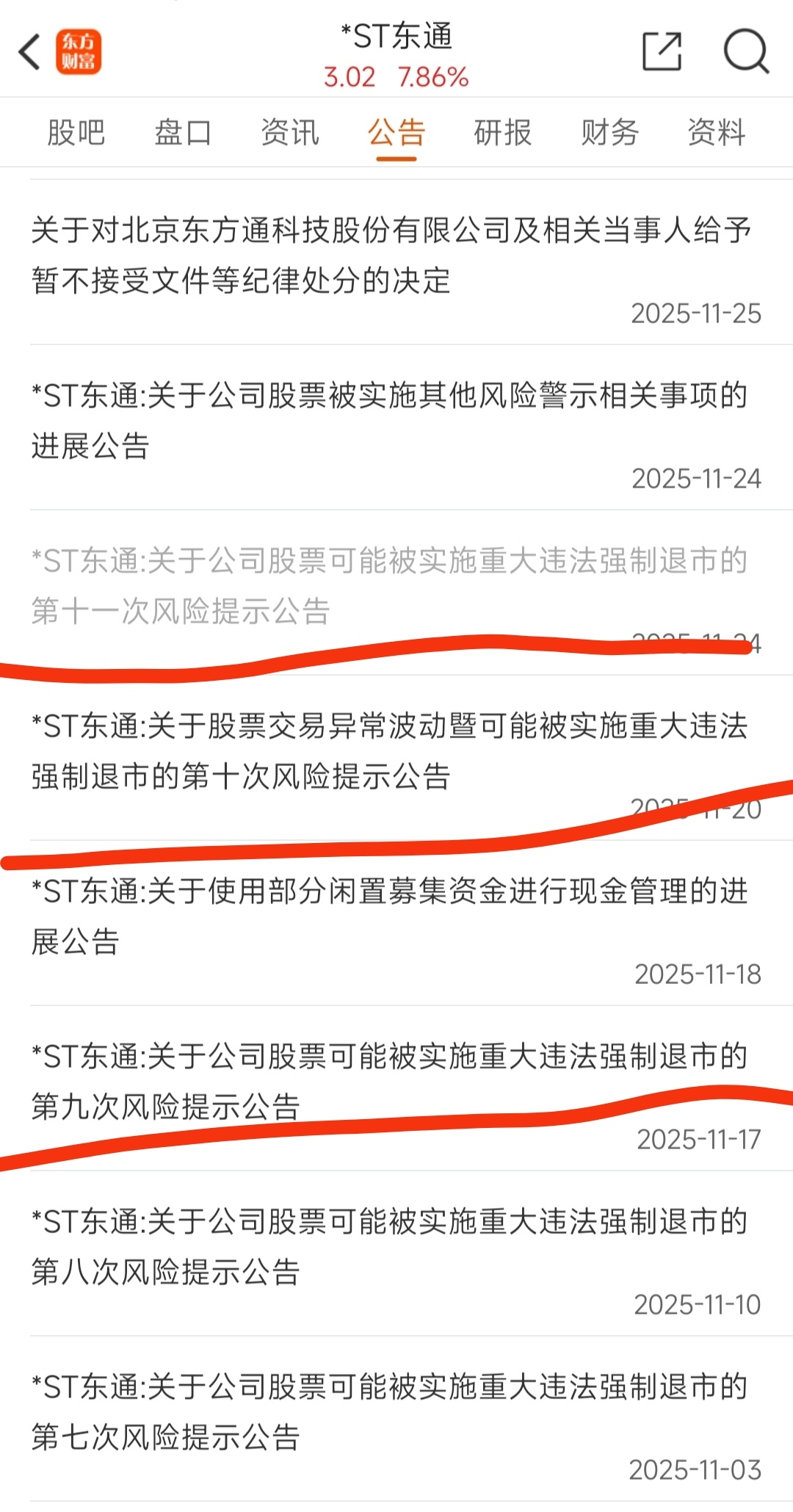 唱空的又来了,我来教大家识别100%会退市的股,就是公告多次单独提示可能重大违法
