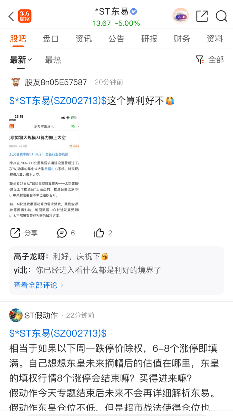 $*ST万方(SZ000638)$ 万方就一杂毛,没有吹票的了,明天我要去东易接盘了,这里面各种苟吹苟V齐聚东易,讲话又好听怎么找都是利好大家一致看好肯定会推动东易重新上涨的
