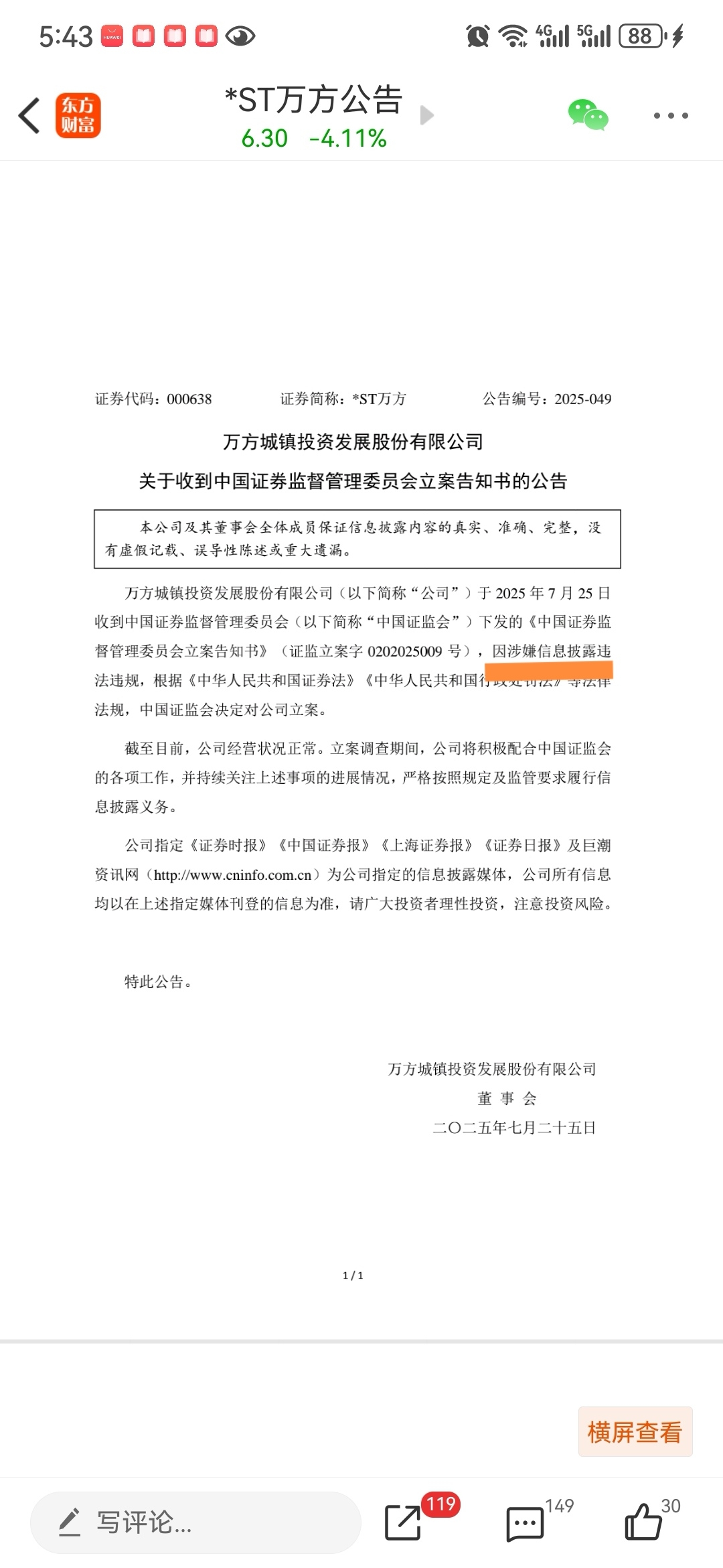 仔细看万方和立方的立案调查公告还是不一样的万方大概率因为这个被调查