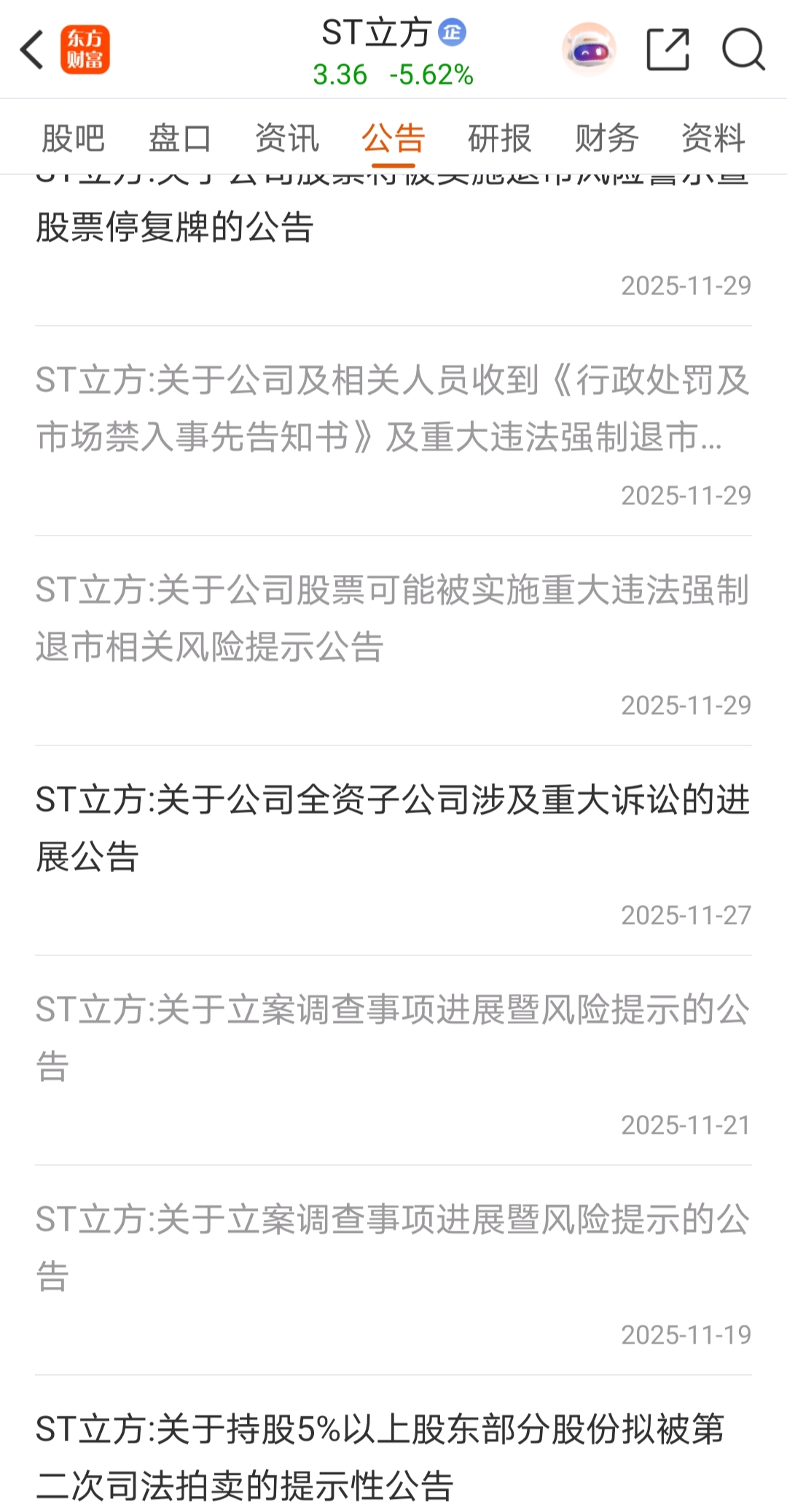 $*ST万方(SZ000638)$ 突发提示进展,万方从信批违规转虚假财报是板上钉钉的,只是目前可能没有达到强退标准,可以参考立方,11月4日突发进展,11月19日继续进展,也就是常规半个月提示,按周按月按半个月,11月22日又是突发进展,说明快结案了果然29号结案,万方目前还没有第二次进展公告,暂时还是安全的