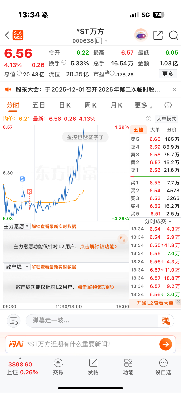 $*ST万方(SZ000638)$ 成功t了8分,又多加仓了一层。感谢自己坚决看好