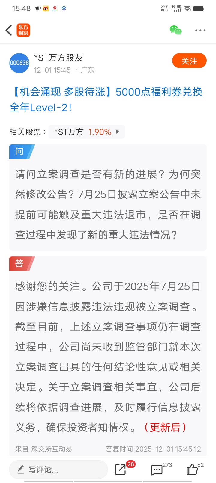 $*ST万方(SZ000638)$ 什么意思,今天又发一次?