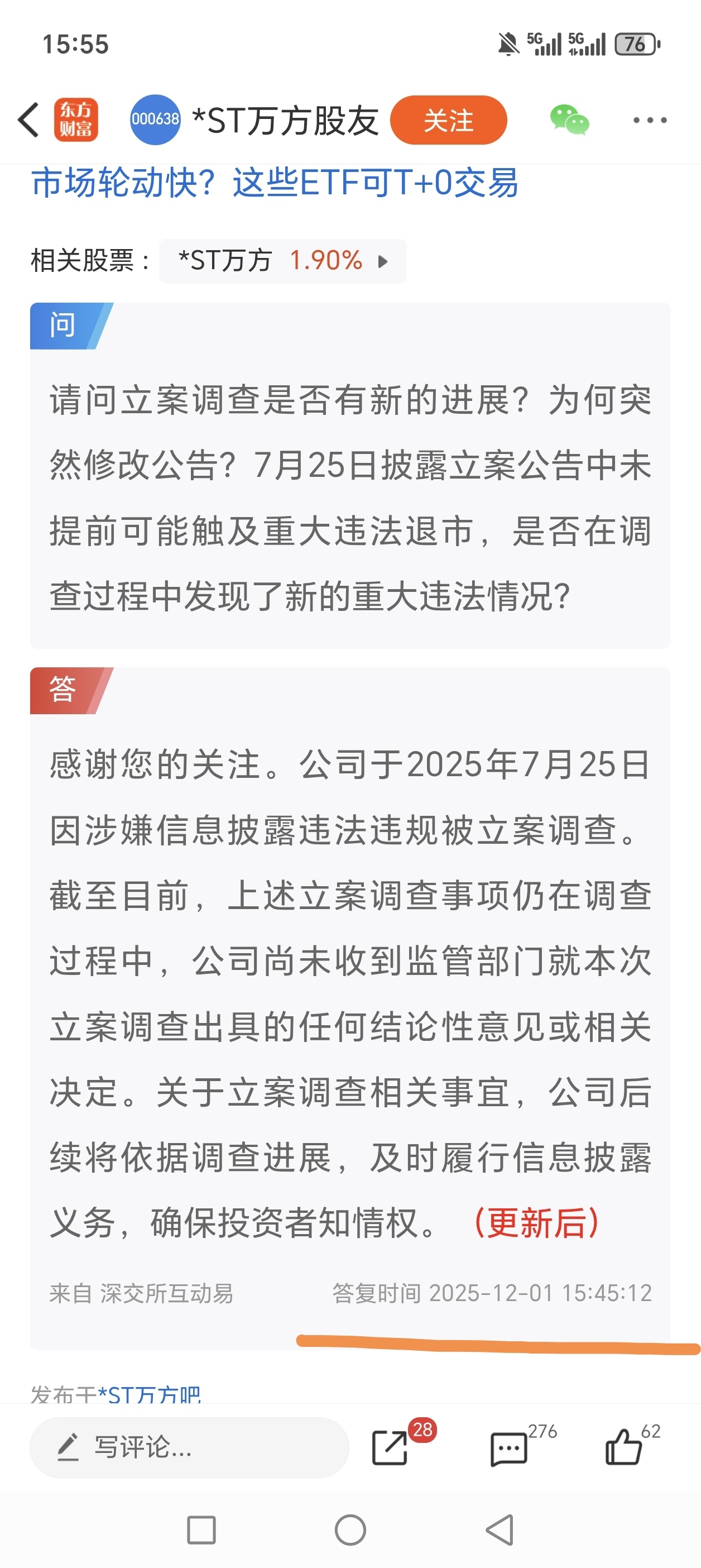 $*ST万方(SZ000638)$ 什么情况?为啥突然更新了