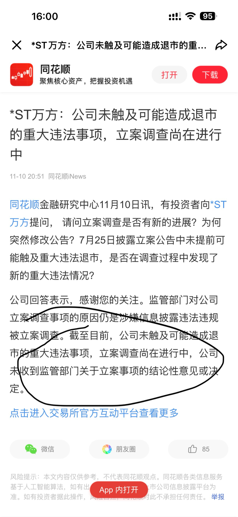 $*ST万方(SZ000638)$ 。。。为啥改了