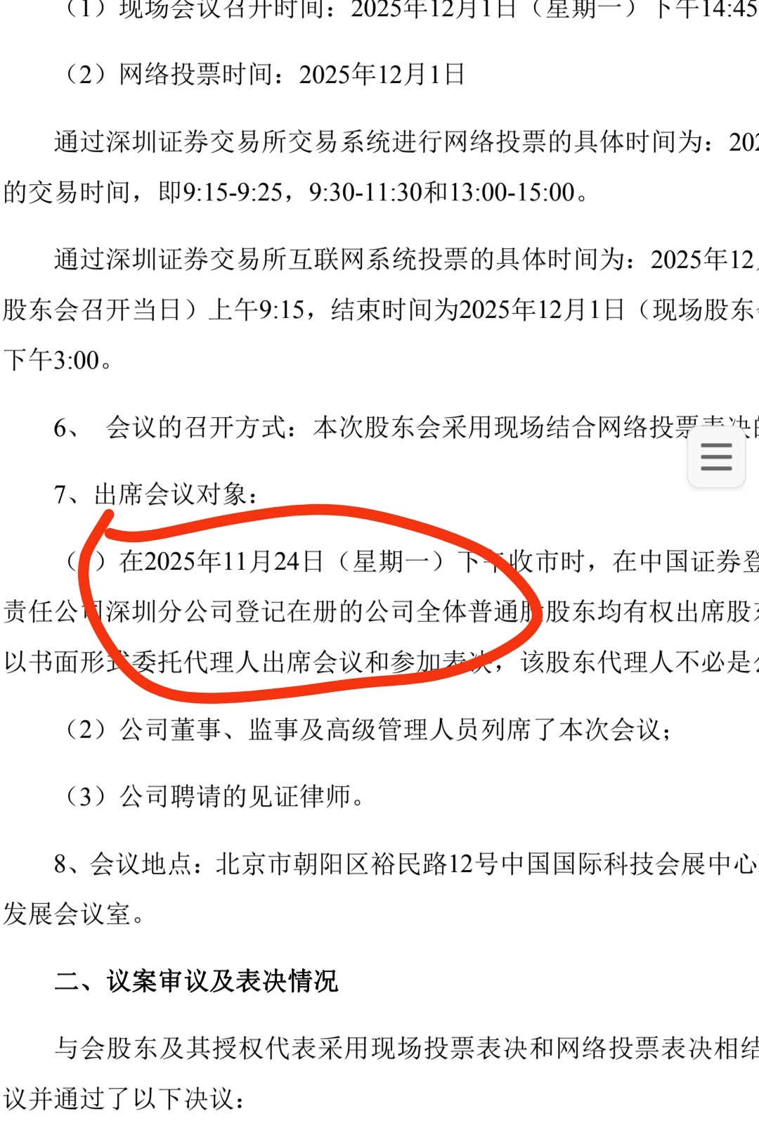 万方这个会议公告最大看点,是出席会议对象是11月24号收市时登记注册的股东,而九