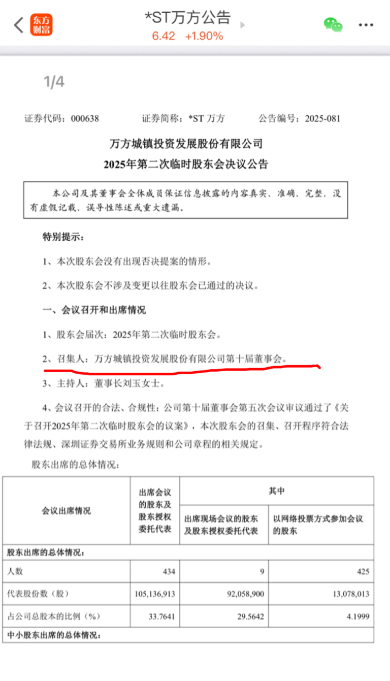 $*ST万方(SZ000638)$ 一些韭菜连规则都没搞明白就幻想股东大会有吉林金控的人了,都没过户公告改选董事会还白日做梦幻想会此次股东大会会有吉林金控的人,还是今年二月份的班子,等吉林金控的人进董事会万方早凉透了