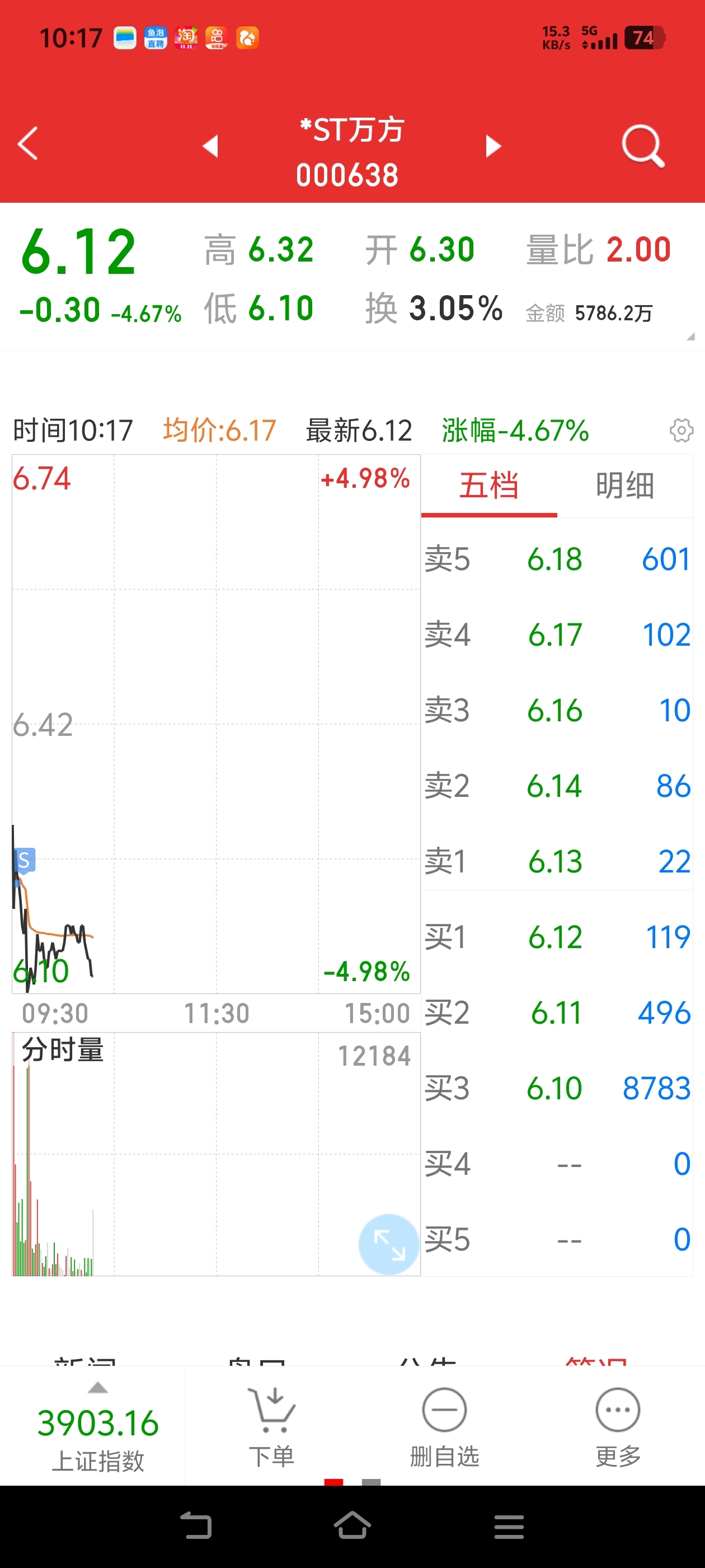 $*ST万方(SZ000638)$ 还好卖了一半,太吓人了