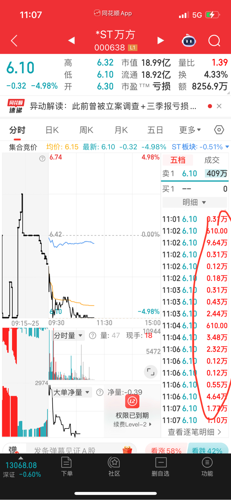 $*ST万方(SZ000638)$ 这票这么牛吗全是买的一个绿的卖的都没有啊,牛b