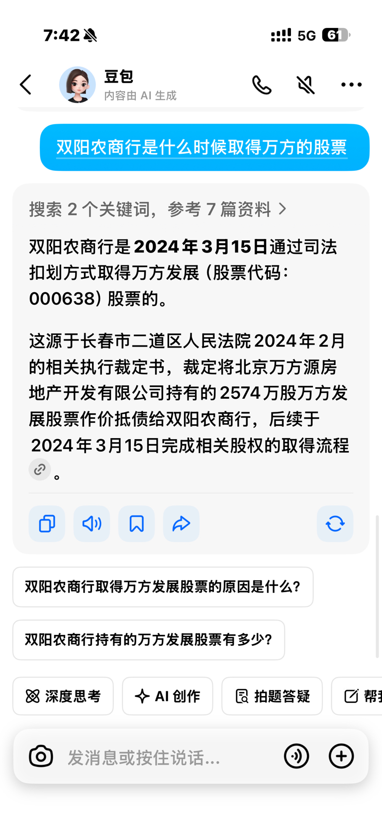 请看豆包给出的结果,也就是说双阳需要在26年3月份之前把股票卖完,不管是以什么方