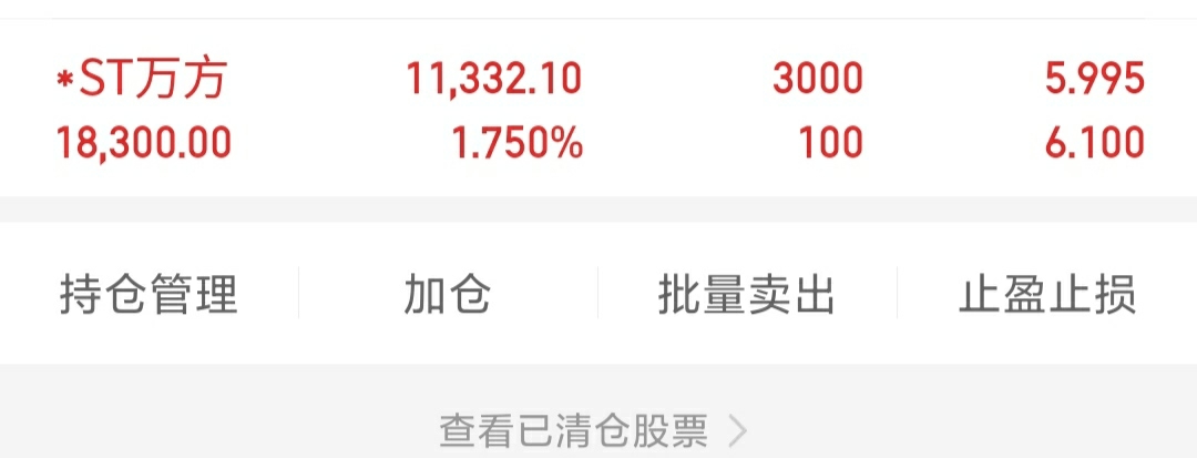 $*ST万方(SZ000638)$ 我的3000股已挂跌停价2900股,另外我的成本应该是负的才对,怎么那么高?变不过来