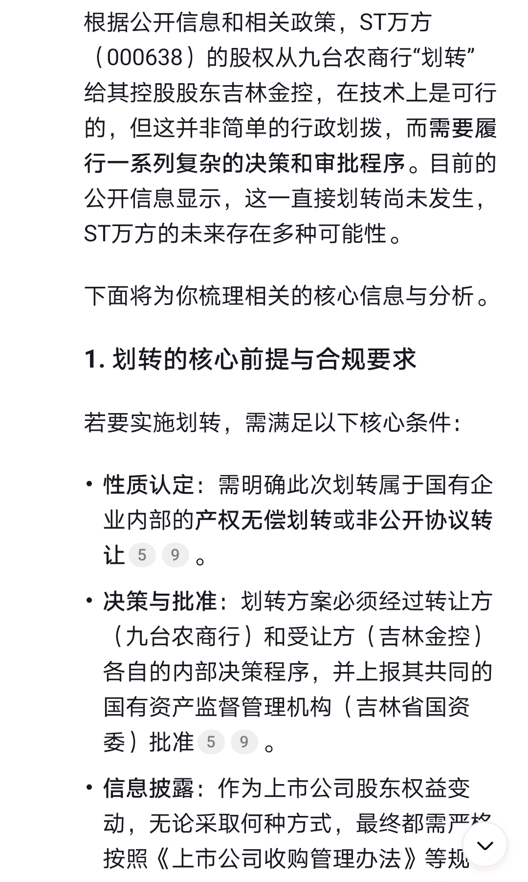 $*ST万方(SZ000638)$ 明天就是开板也没有人愿意买,明天晚上董秘要发立案进展,另外裁定过户只能给九台行,千万不要多想,周五胆大的可以买回一点